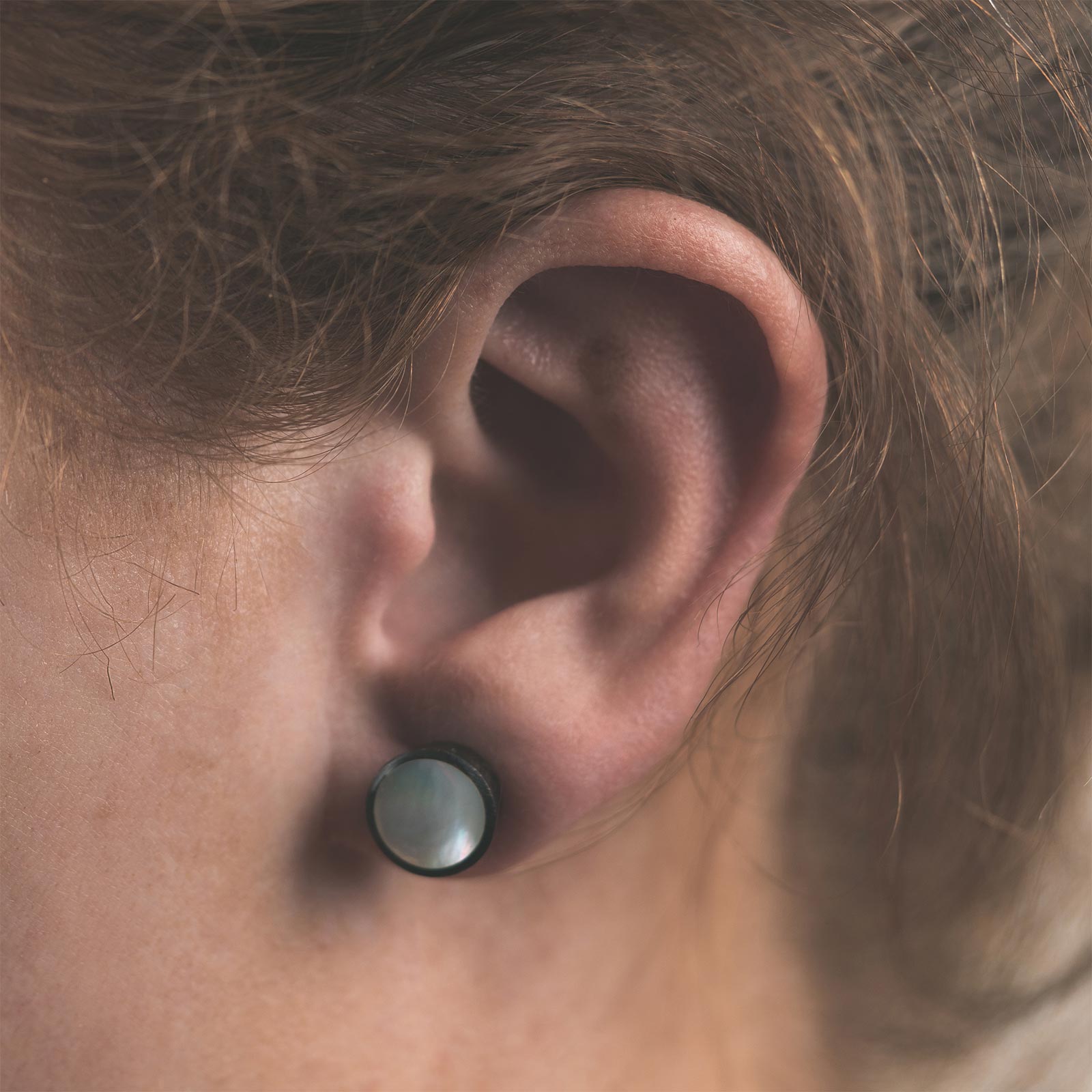 Horn Fake Gauge Plug With Abalone Shell & MOP Mosaic Inlay Horn Fake Gauge Plug With Abalone Shell & MOP Mosaic Inlay Model Shot