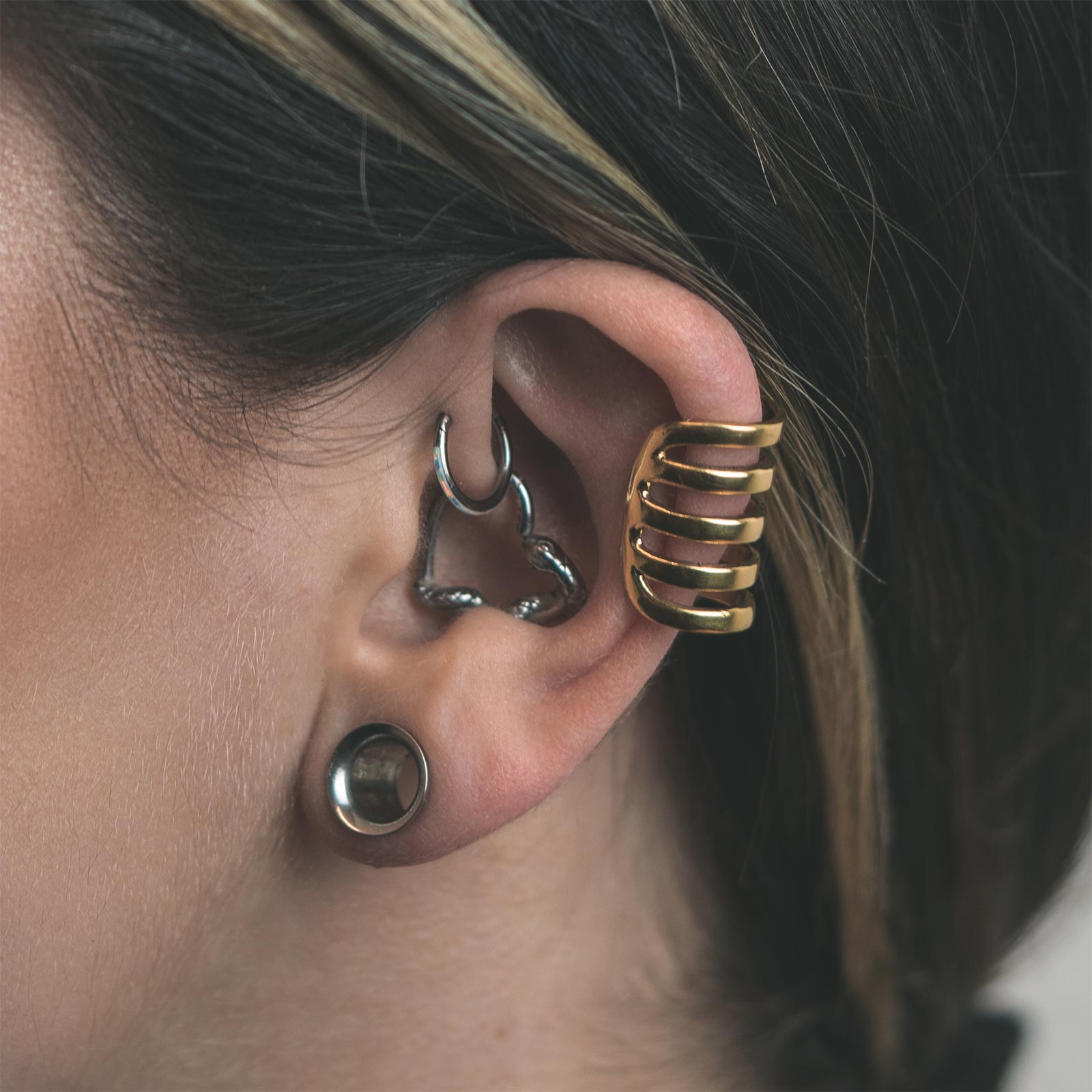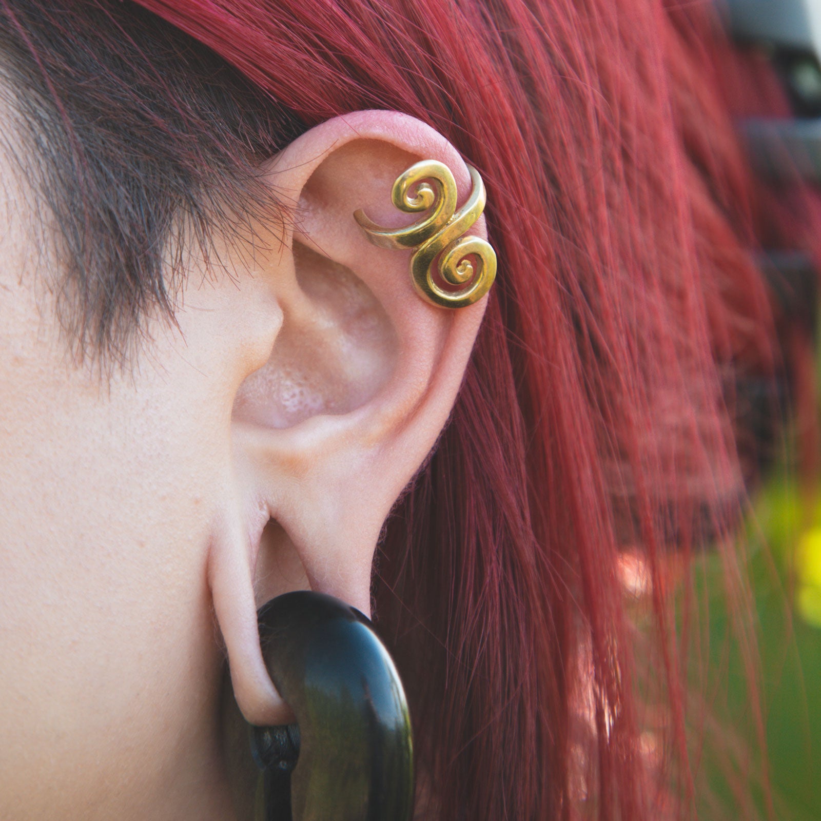 Anyone can wear ear cuffs! Simply pop the cuff around the helix area of the ear and gently squeeze the cuff together firmly holding the jewellery in place.