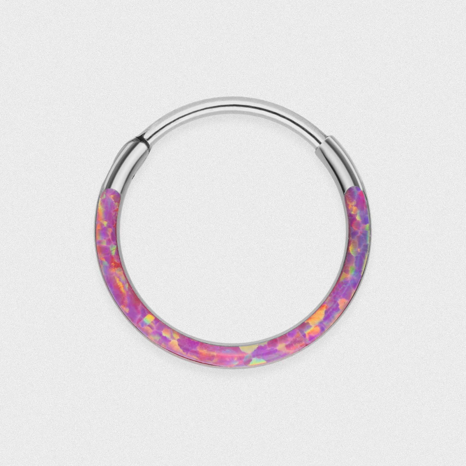 Inlaid Pink & Yellow Synth Opal Titanium Septum Clicker Inlaid Pink & Yellow Synth Opal Titanium Septum Clicker Model Shot