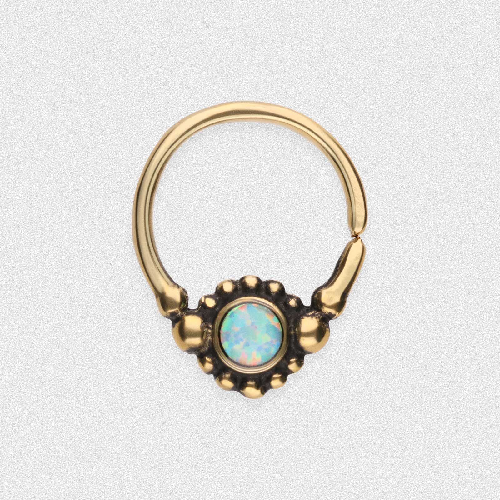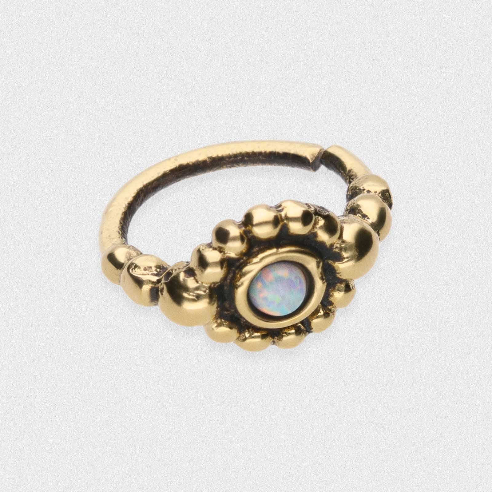 Beaded Regal Brass Plug Hoops Beaded Regal Brass Plug Hoops Model Shot
