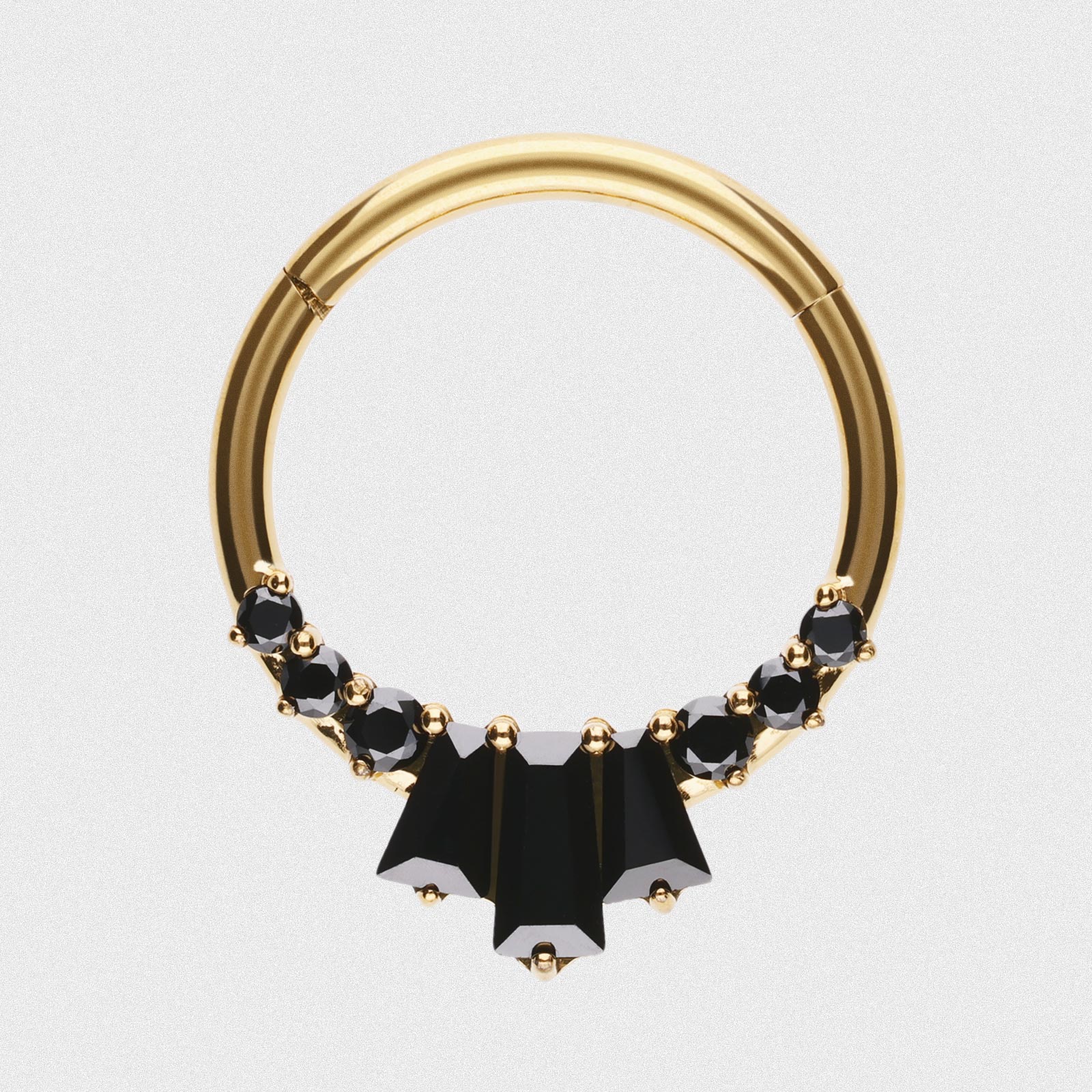 Mixed Cut Black Bejewelled Titanium Hinged Segment Ring Stretch It Body Jewellery Pouch
