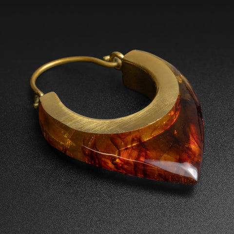 Fire Storm Epoxy & Brass Plug Hoops Fire Storm Epoxy & Brass Plug Hoops Model Shot Two