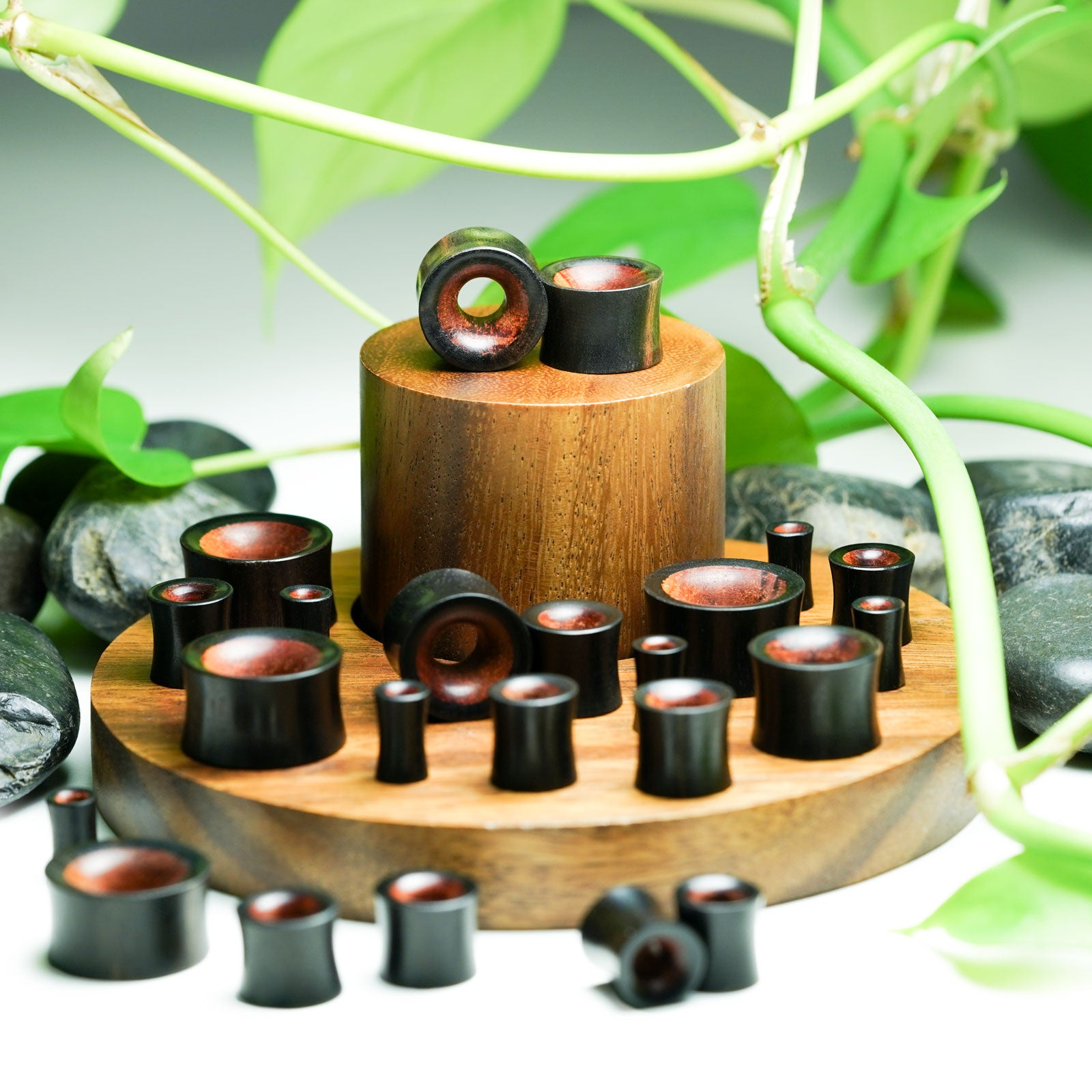 Areng Wood Double Flare Tunnel With Rangas Wood Inlay Areng Wood Double Flare Tunnel With Rangas Wood Inlay Group Shot