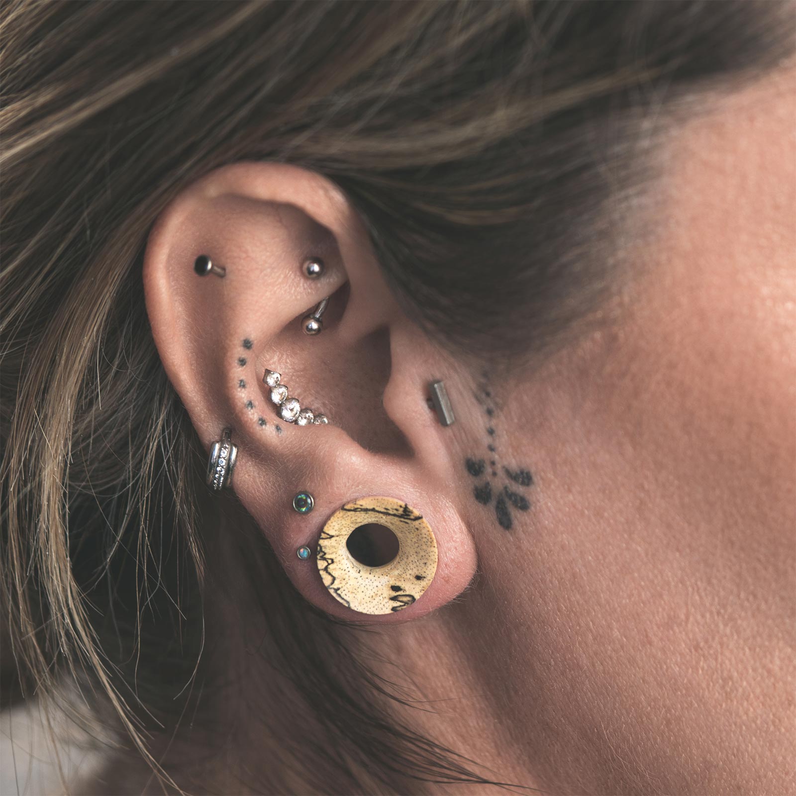 Sono Wood Double Flare Tunnel With Bone Spiral Inlay Sono Wood Double Flare Tunnel With Bone Spiral Inlay Model Shot
