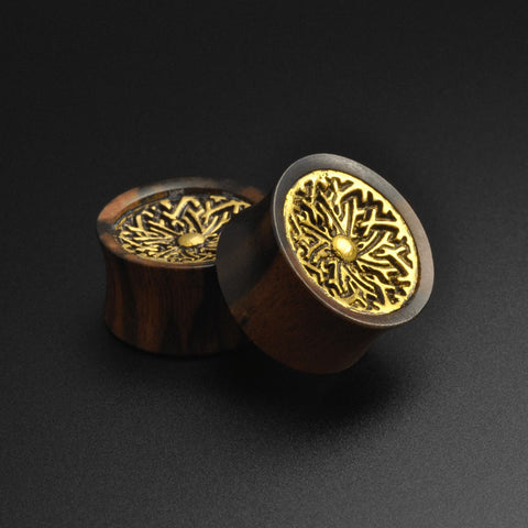 Areng Wood Double Flare Plug With Brass Shield Inlay Areng Wood Double Flare Plug With Brass Shield Inlay Model Shot