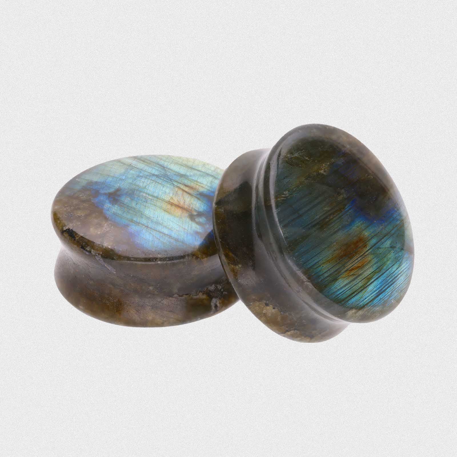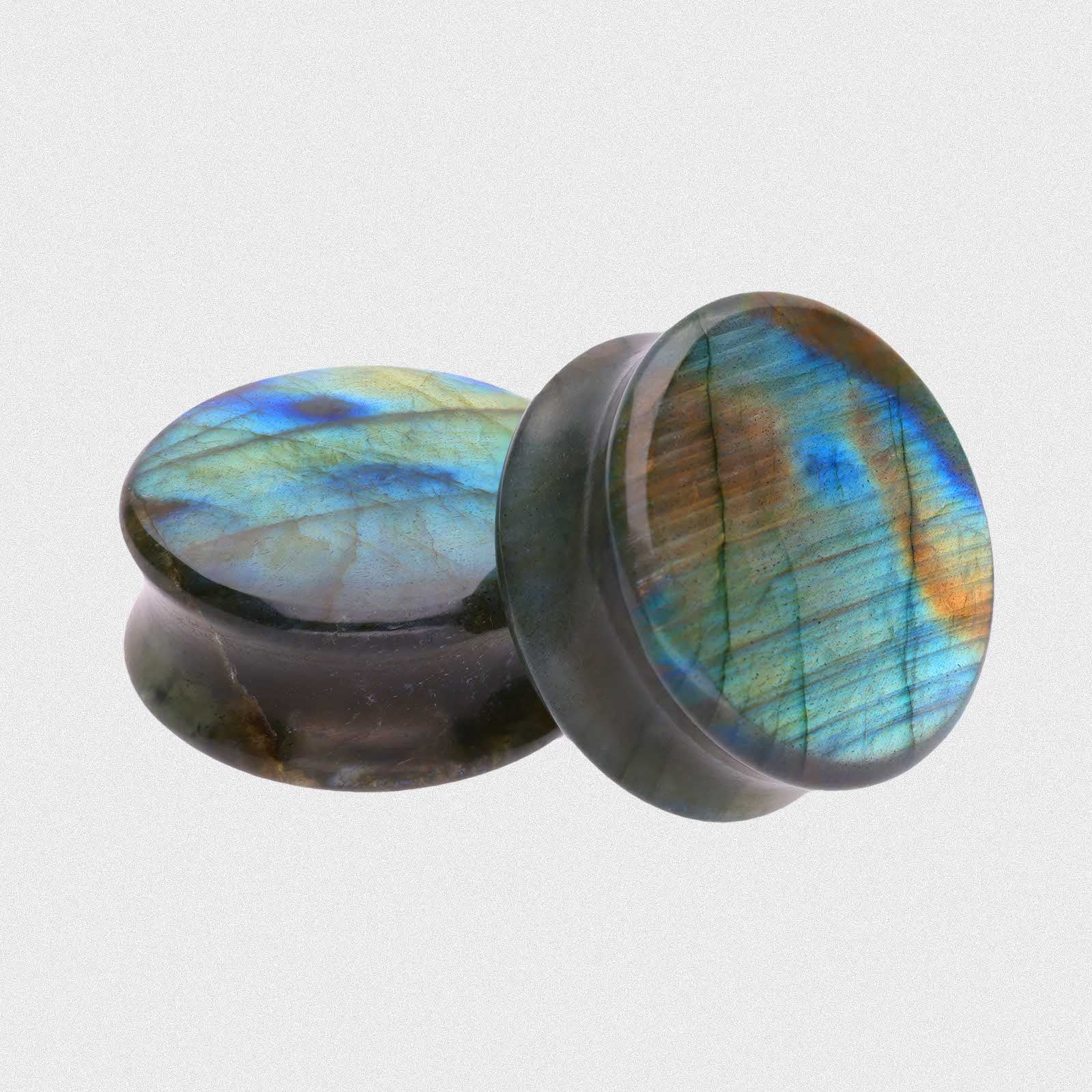 Grade B Labradorite Stone Plugs Grade B Labradorite Double Flare Convex Stone Plug Model Shot
