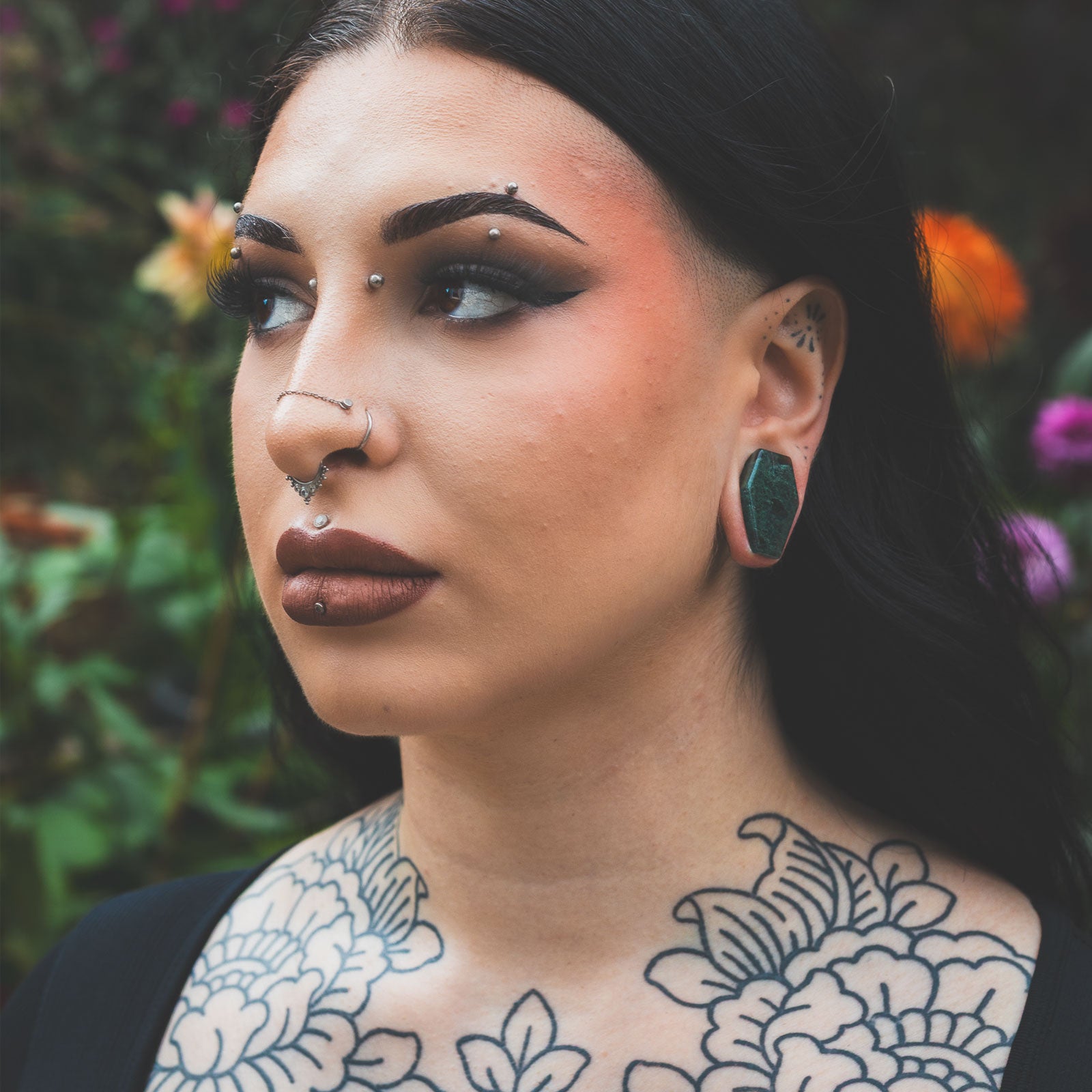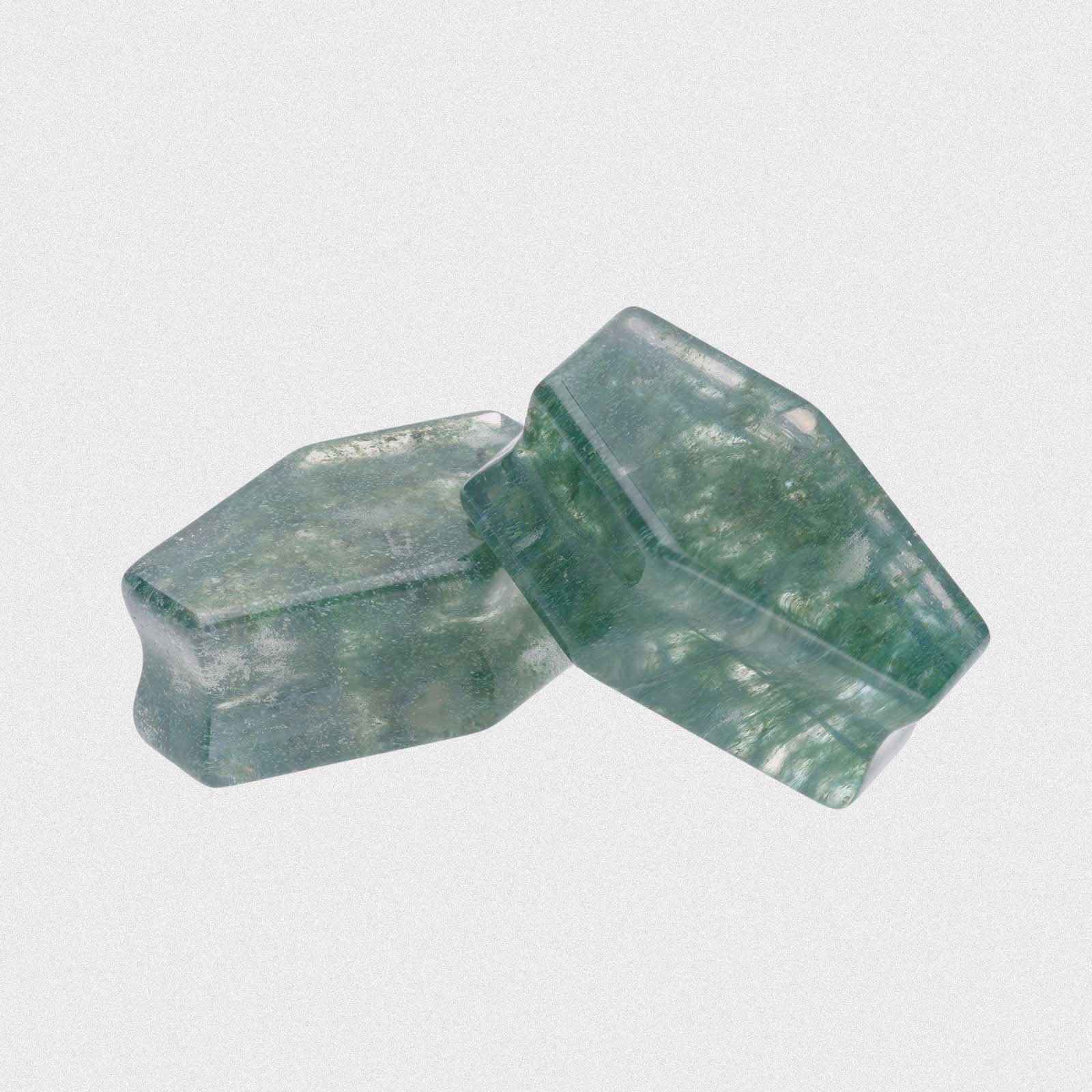 Moss Agate Double Flare Coffin Stone Plug Moss Glass Double Flare Coffin Stone Plug Model Shot