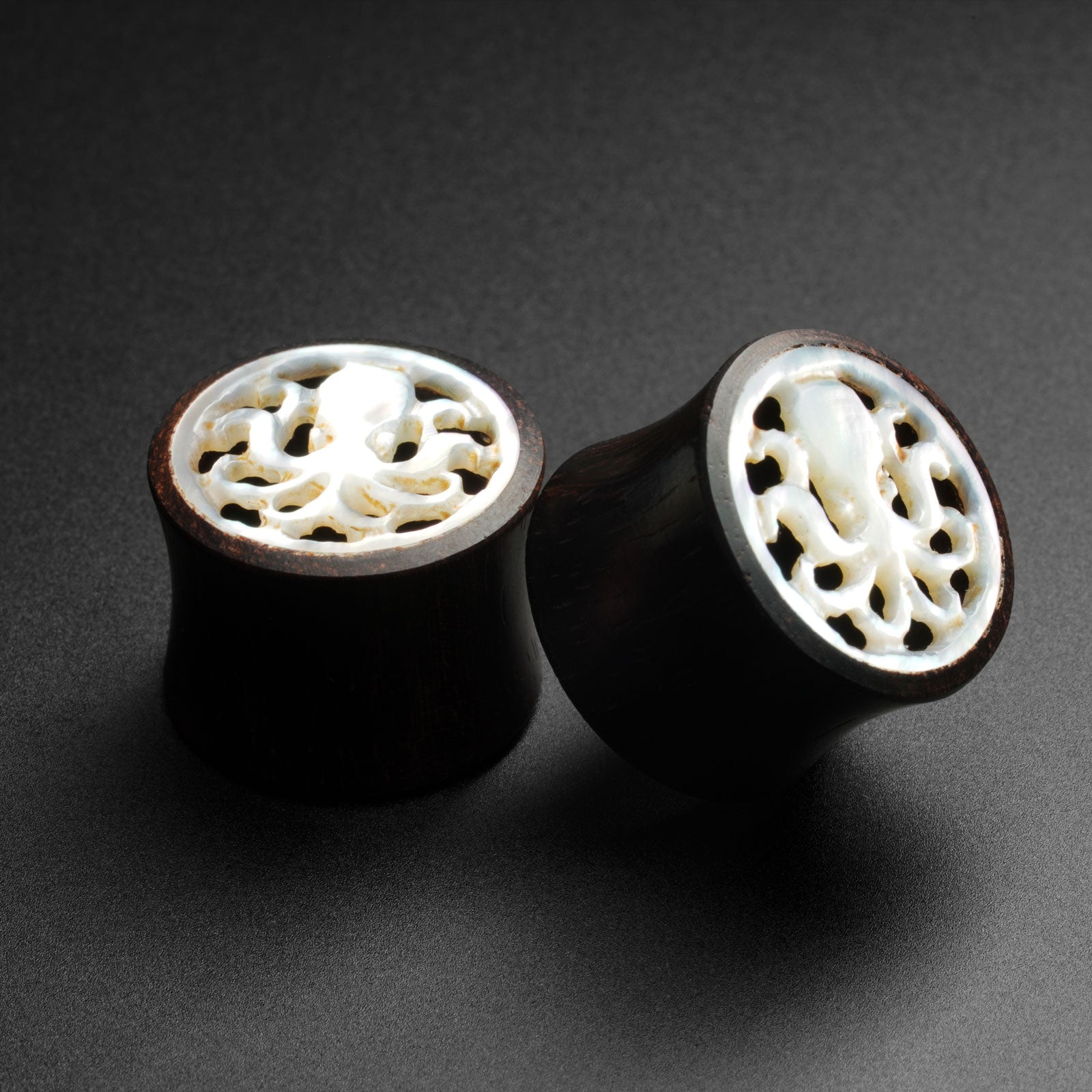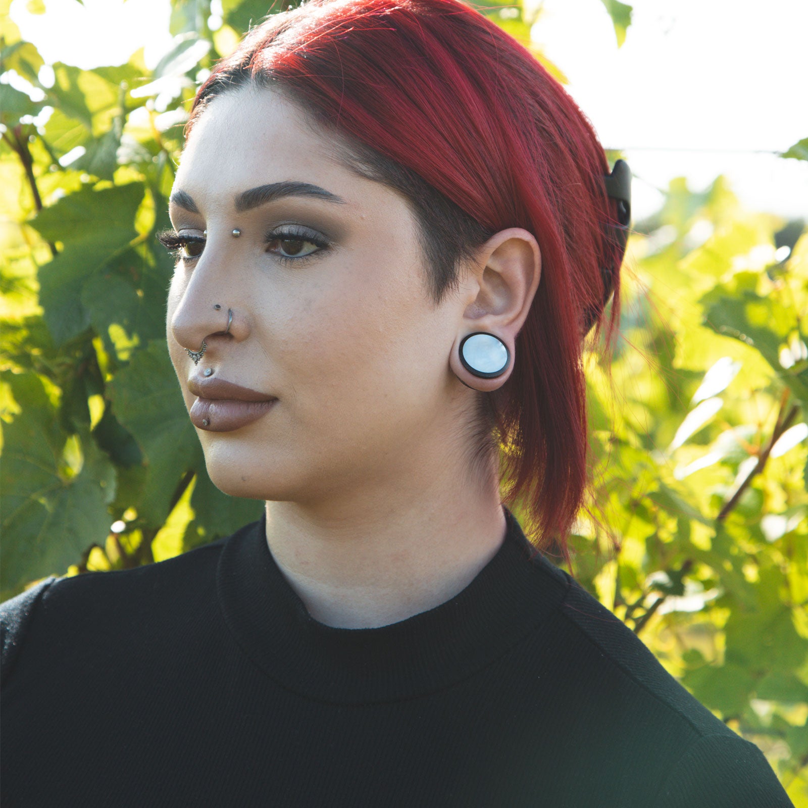Sono Wood Double Flare Plug With MOP Inlay Sono Wood Double Flare Plug With MOP Inlay Model Shot