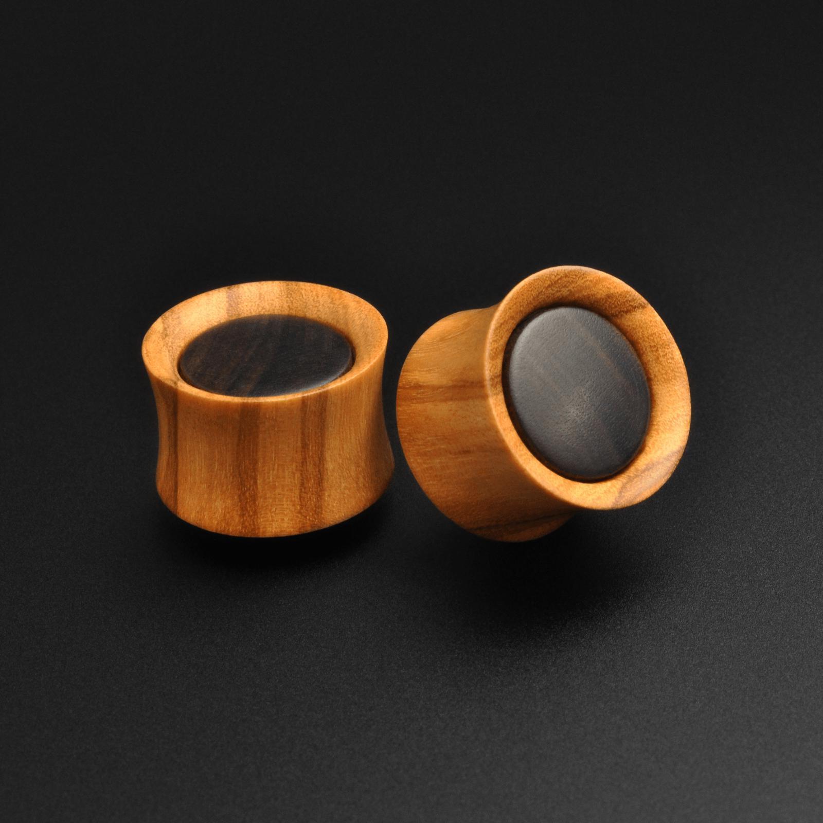 Olive Wood Double Flare Plug With Sono Wood Inlay Olive Wood Double Flare Plug With Sono Wood Inlay Model Shot