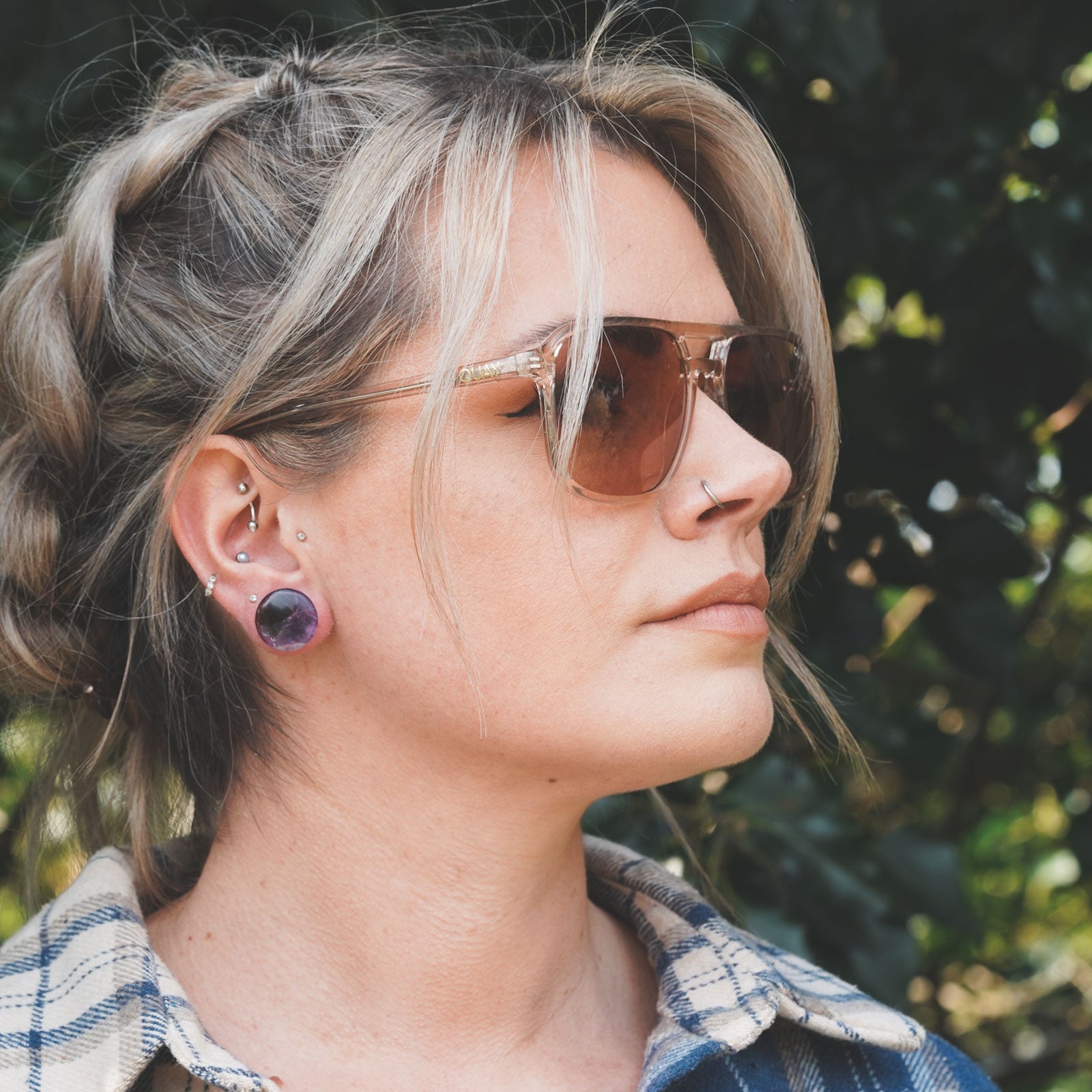 Amethyst Single Flare Convex Stone Plug Model Shot