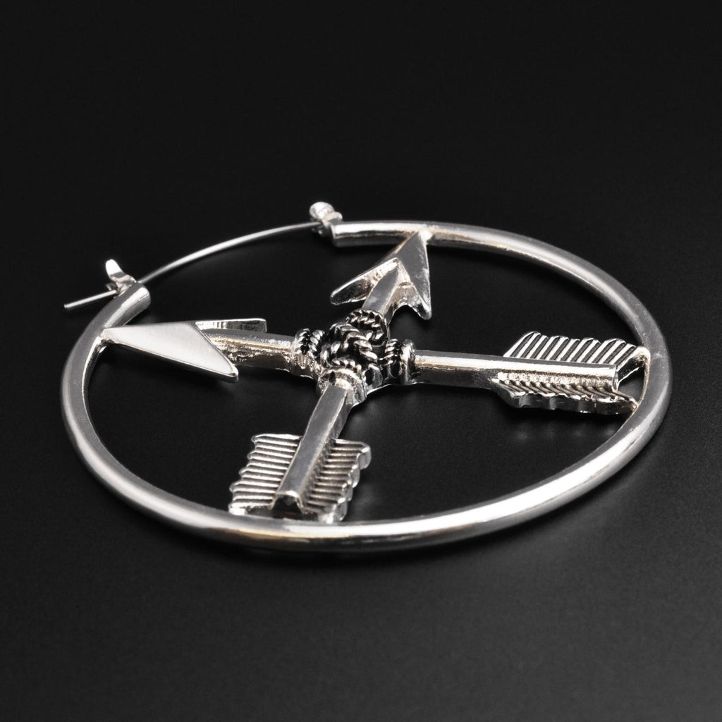 Arrow & Rope Cross Antique Silver Plug Hoops