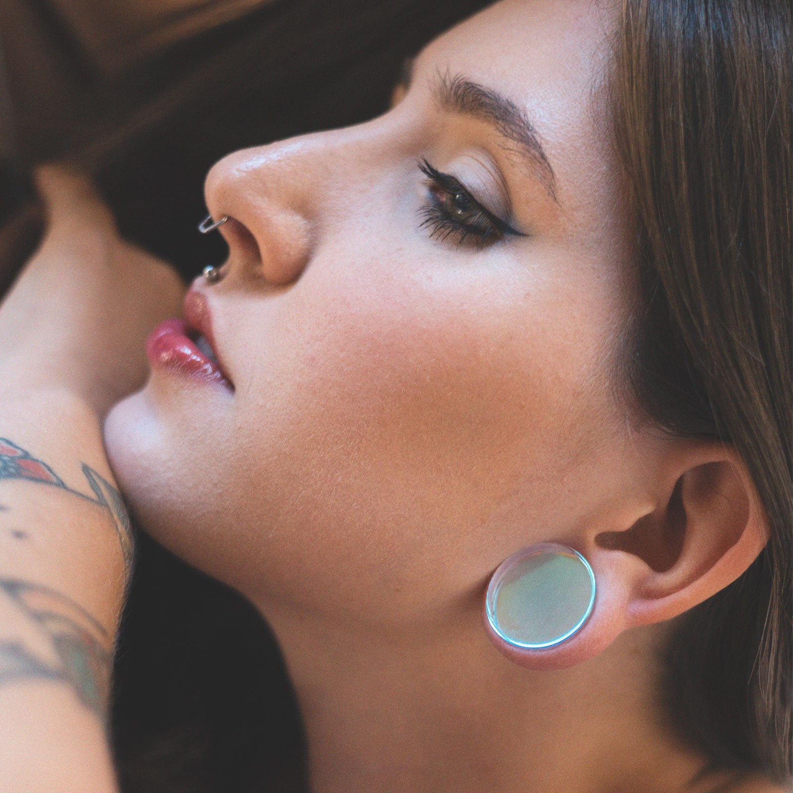 Aurora Glass Double Flare Plug Model Shot Close Up
