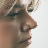Beaded Synthetic White Opal Brass Seamless Nose Ring Model Shot