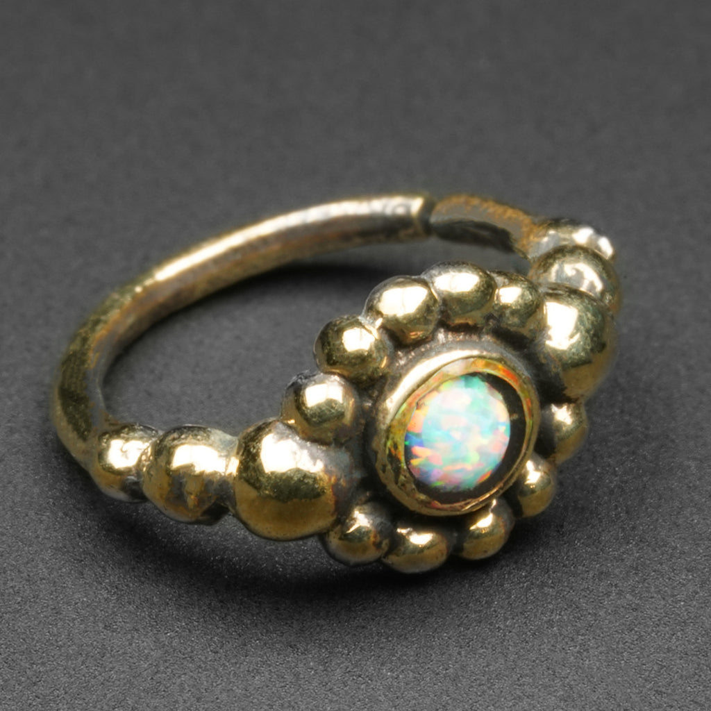 Beaded Synth White Opal Brass Seamless Nose Ring