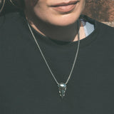 Bird Skull White Brass Pendant With Adjustable Cord Necklace Model Shot