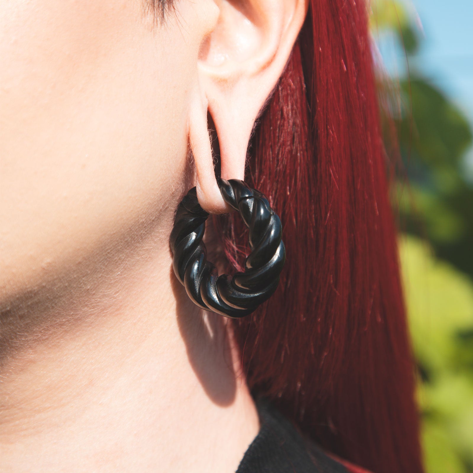 Black PVD Oval Rope Magnetic Ear Weight Model Shot Close Up