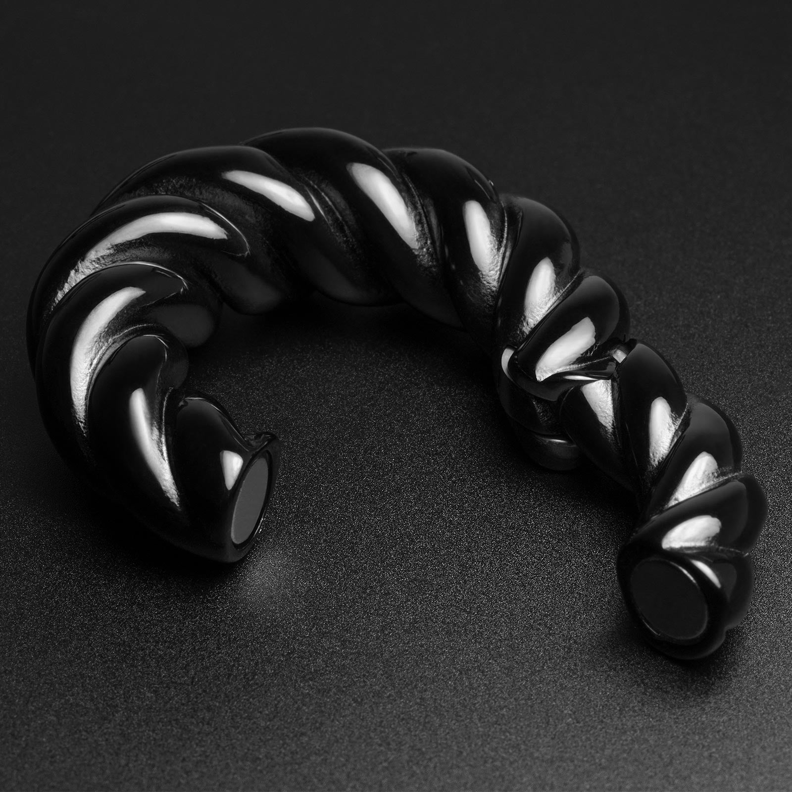 Black PVD Oval Rope Magnetic Ear Weight Model Shot