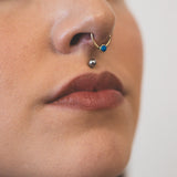 Blue Synth Opal & Brass Seamless Septum Ring Model Shot Close Up