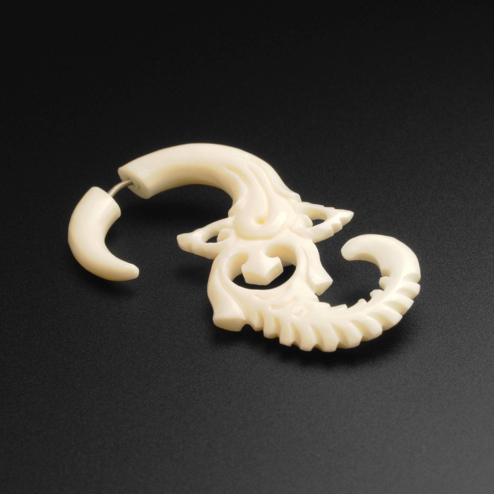 Bone Fake Gauge Hanging Floral Spiral Model Shot