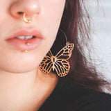 Butterfly Gold Plug Hoops Model Shot Close Up