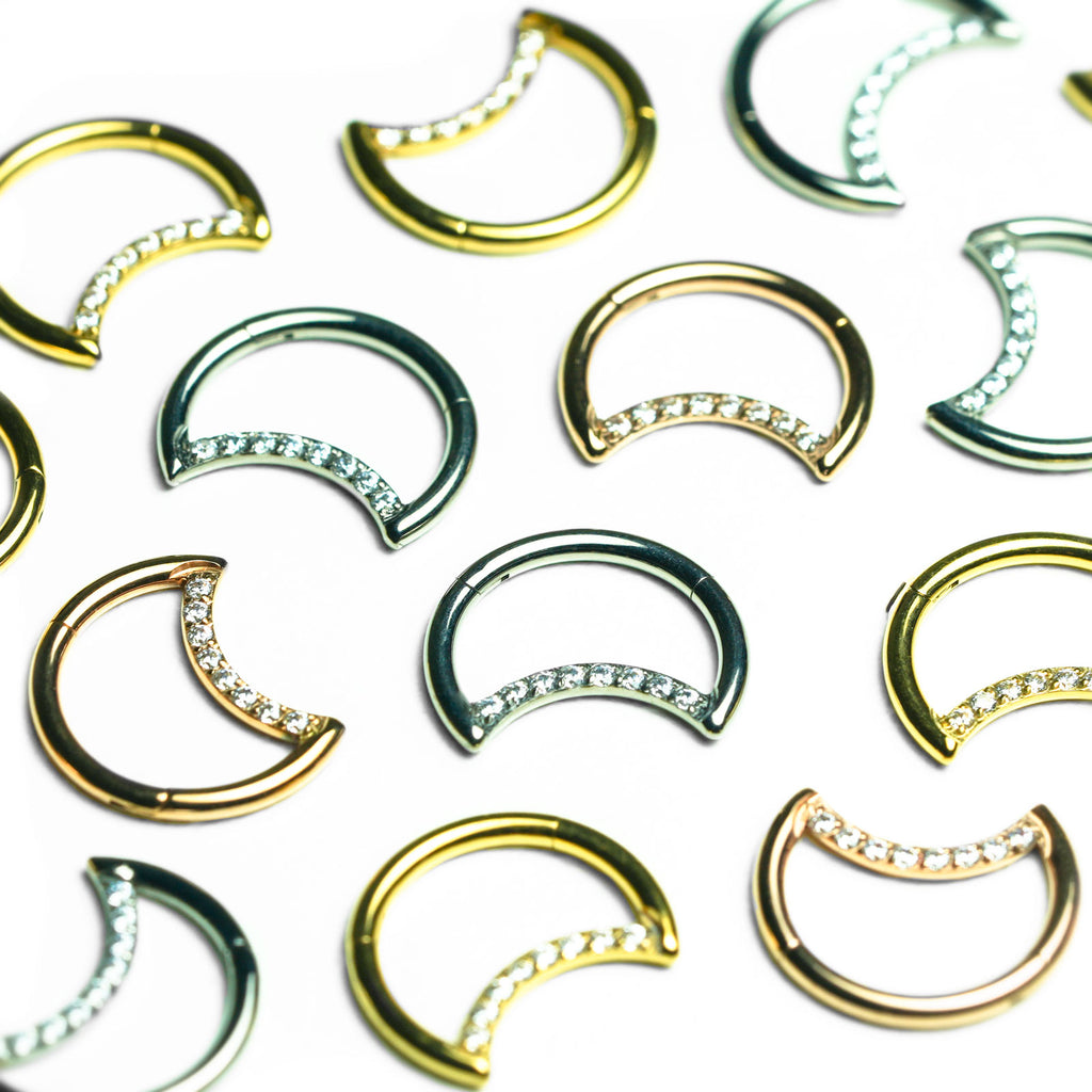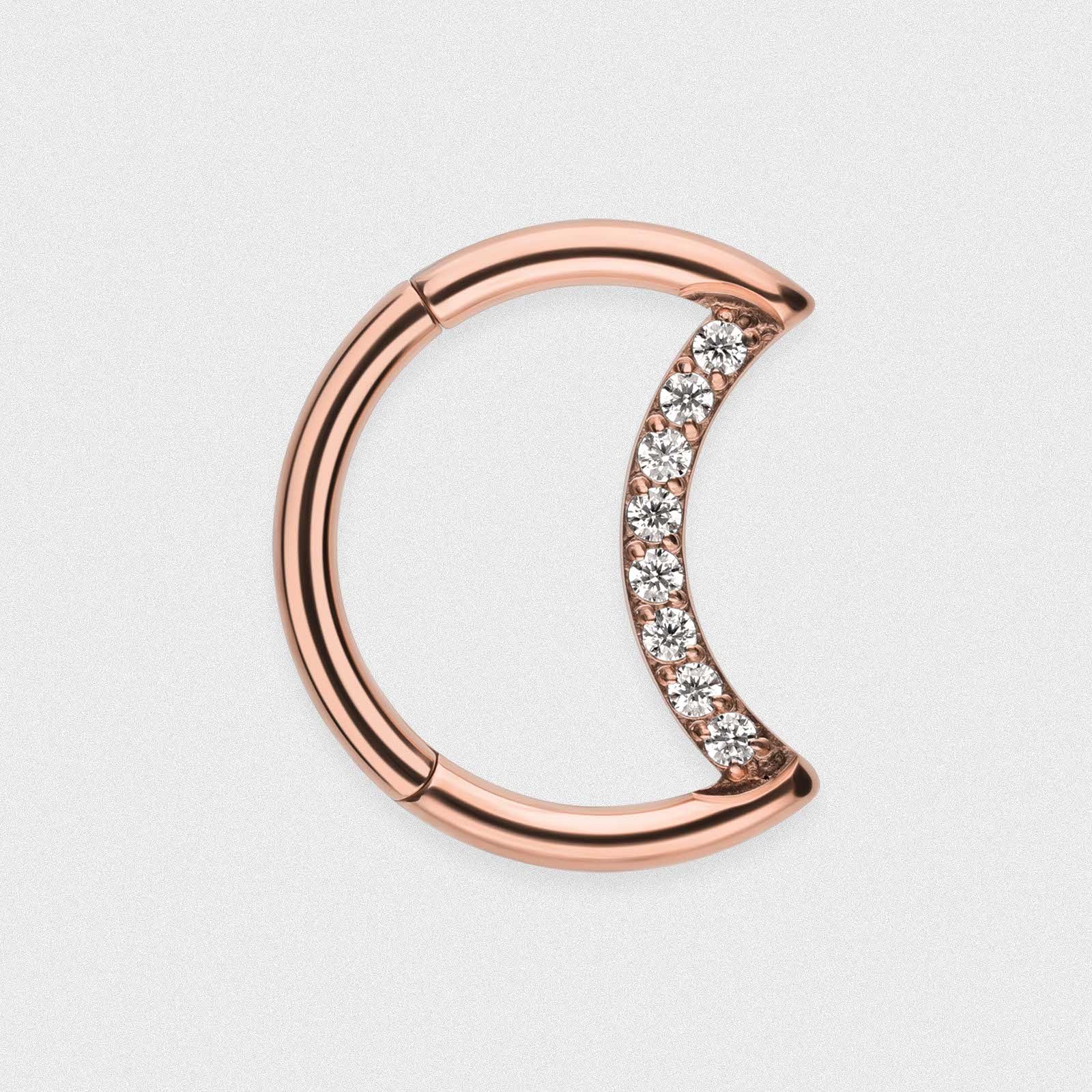 Crescent Bejewelled Rose Gold PVD Titanium Hinged Segment Daith Earring