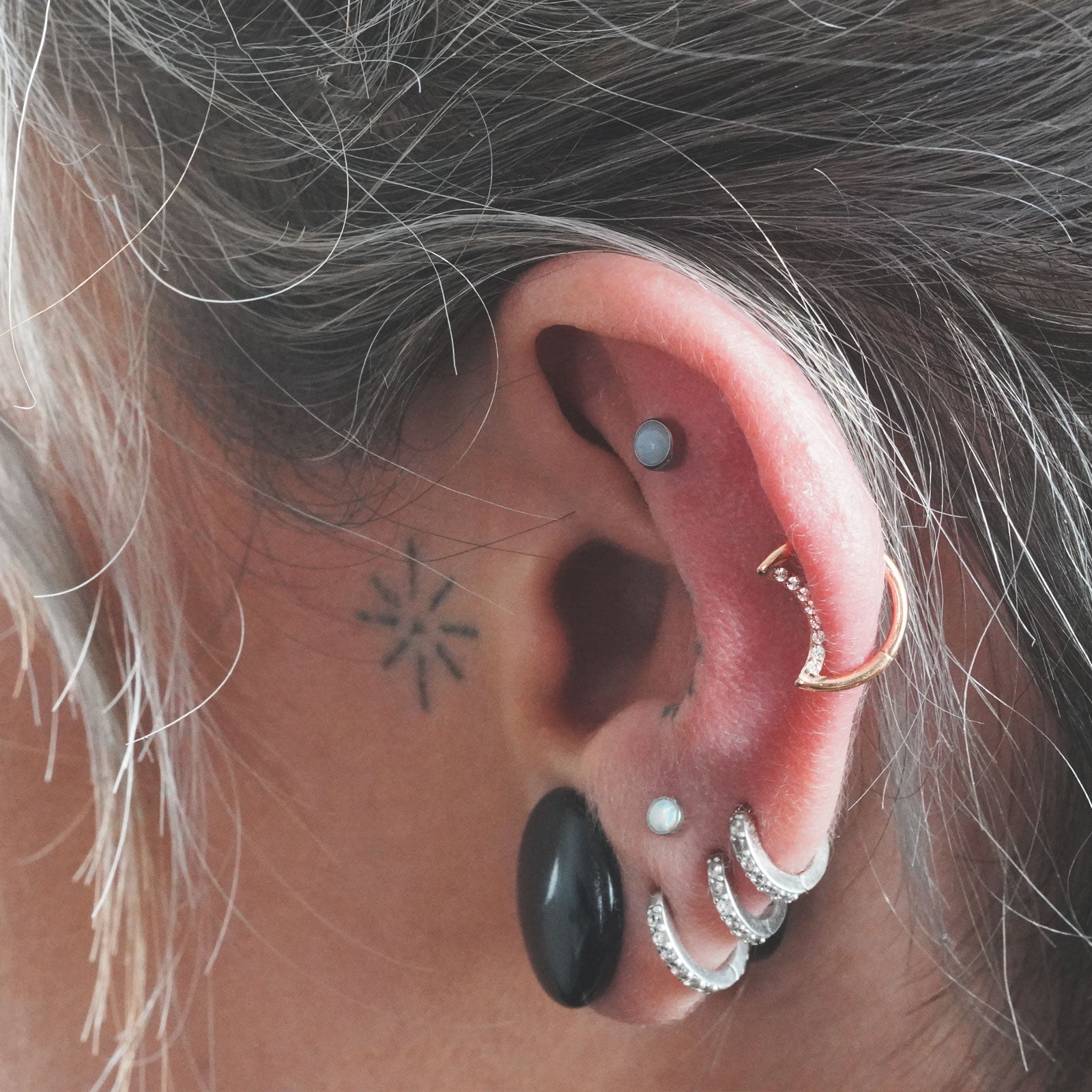 Crescent Bejewelled Rose Gold PVD Titanium Hinged Segment Daith Earring Model Shot