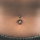 Double Rose Pink Synth Opal Bezel Set Internally Threaded Titanium Belly Bar