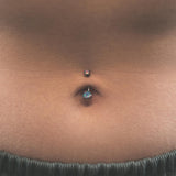 Double Flash Lavender Synth Opal Bezel Set Internally Threaded Titanium Belly Bar Model Shot