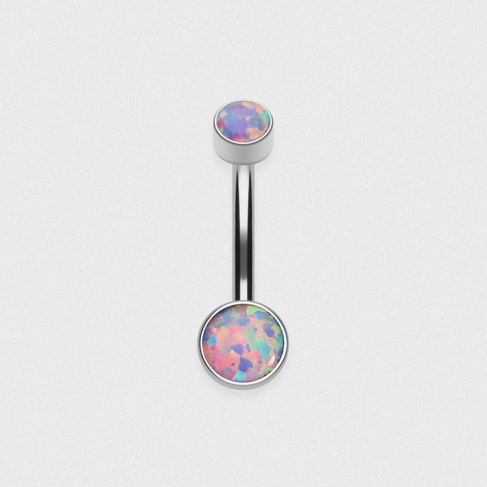Double Flash Lavender Synth Opal Bezel Set Internally Threaded Titanium Belly Bar