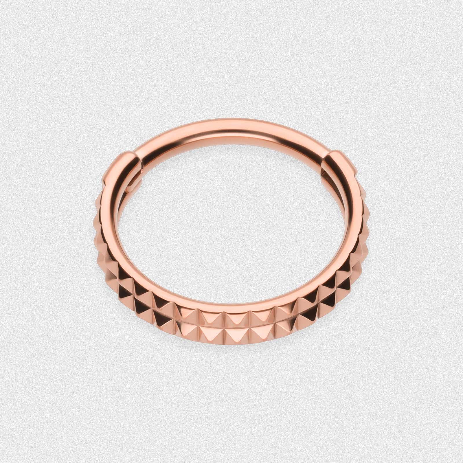 Double Pyramid Rose Gold PVD Titanium Hinged Segment Ring Model Shot