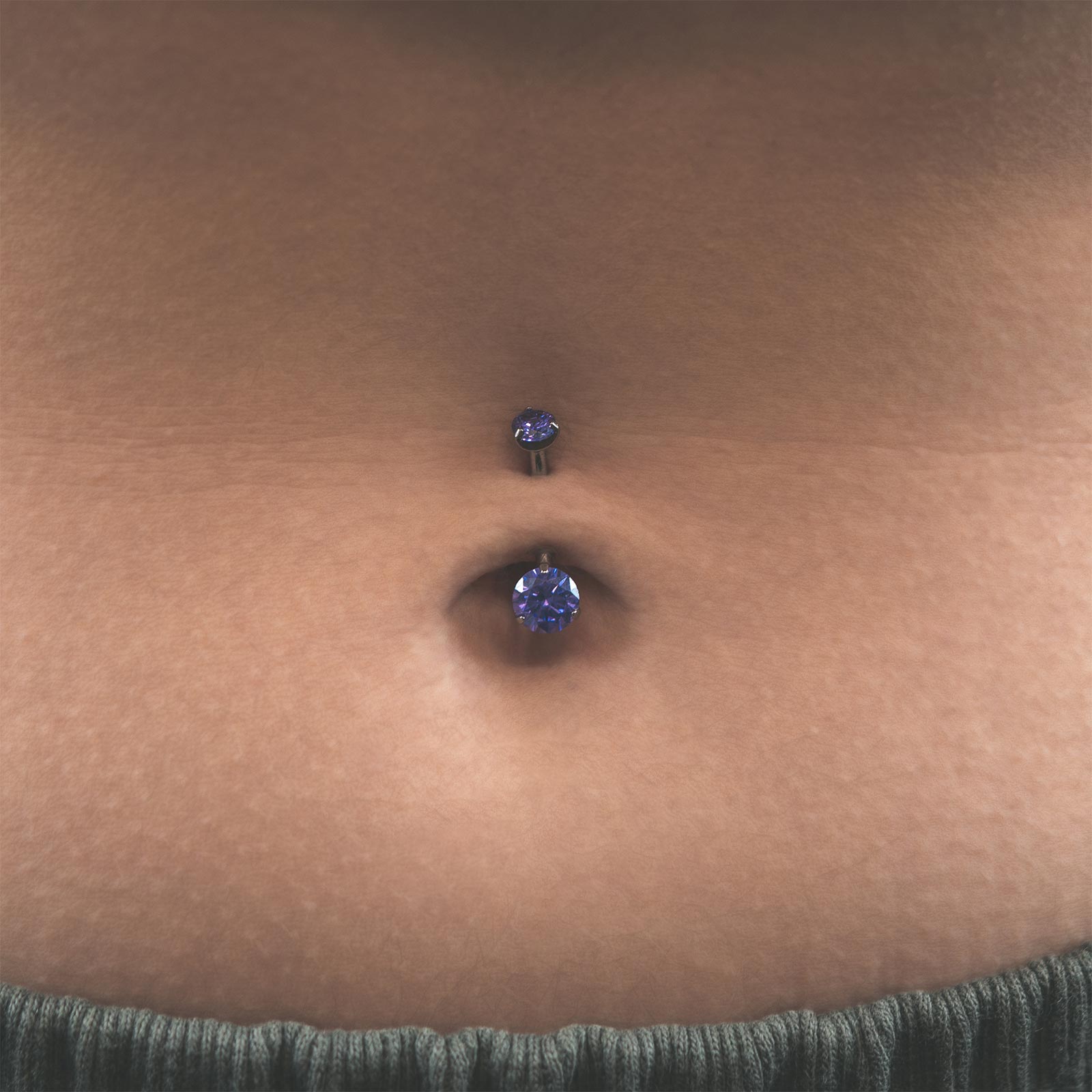 Double Tanzanite Blue Jewelled Internally Threaded Titanium Belly Bar Model Shot
