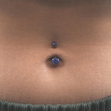 Double Tanzanite Blue Jewelled Internally Threaded Titanium Belly Bar