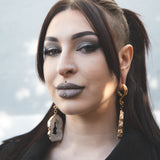 Druzy White Agate With Gold PVD Hook Ear Weight Model Shot Close Up