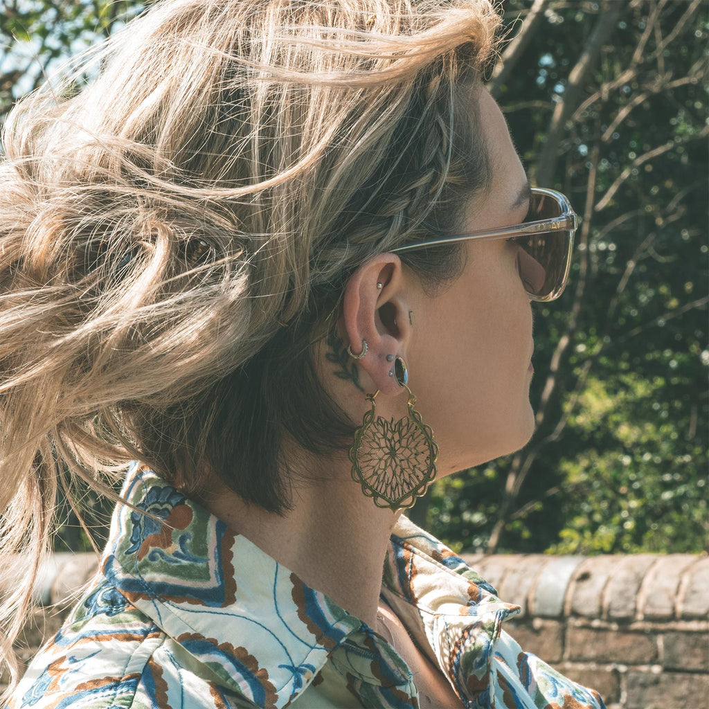 Flower Drop Brass Plug Hoop Model Shot