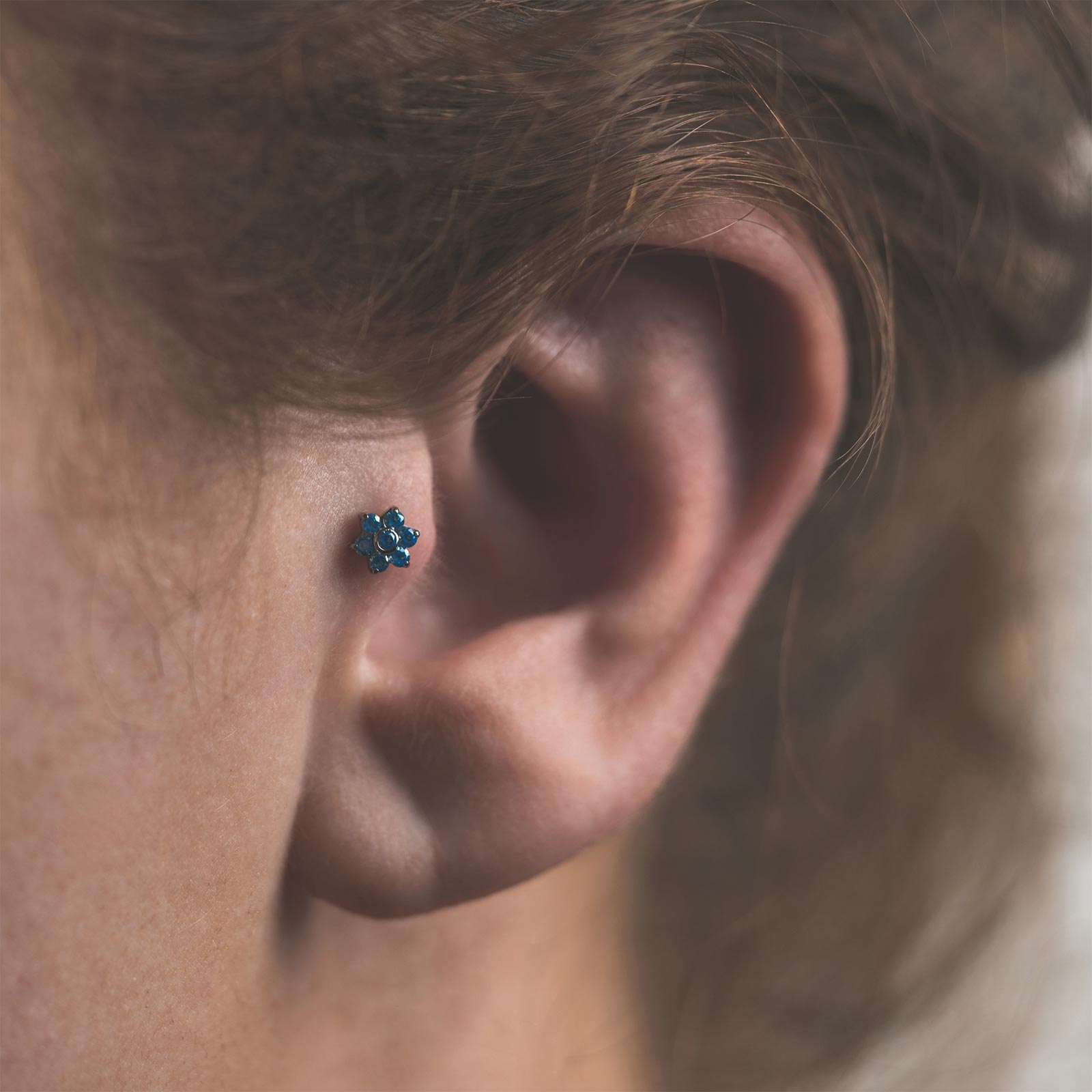 Flower Shape Aqua Bejewelled Titanium Threadless Top Model Shot
