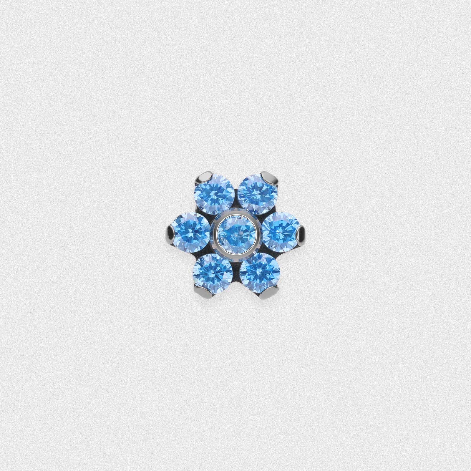 Flower Shape Aqua Bejewelled Titanium Threadless Top