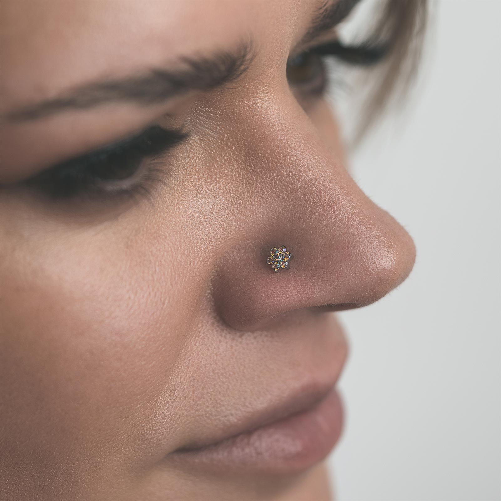Flower Shape Aurora Borealis Bejewelled Titanium Threadless Top Model Shot