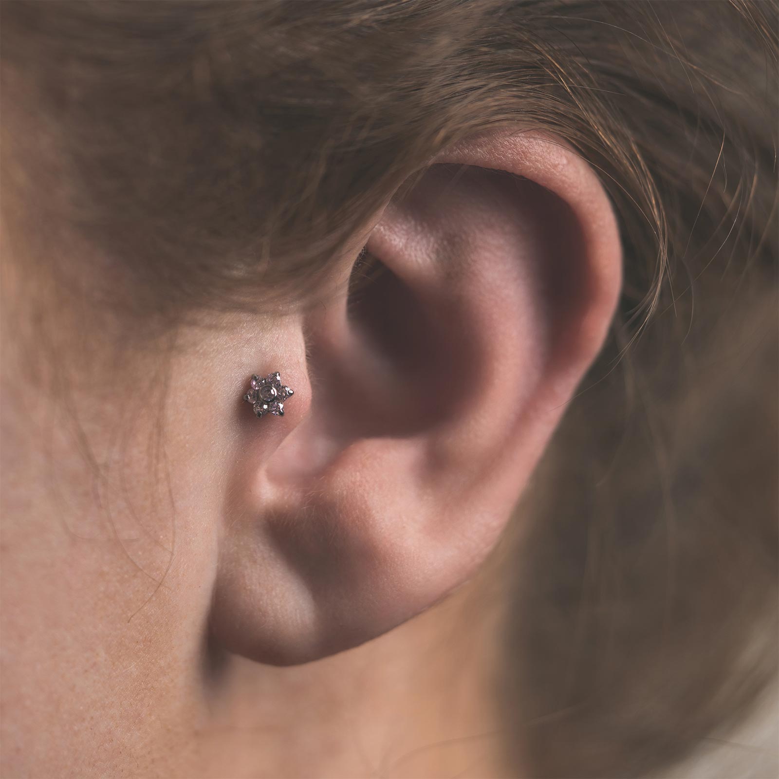 Flower Shape Pink Bejewelled Titanium Threadless Top Model Shot