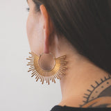 Gold Plated Sunbeam Plug Hoops Model Shot Close Up