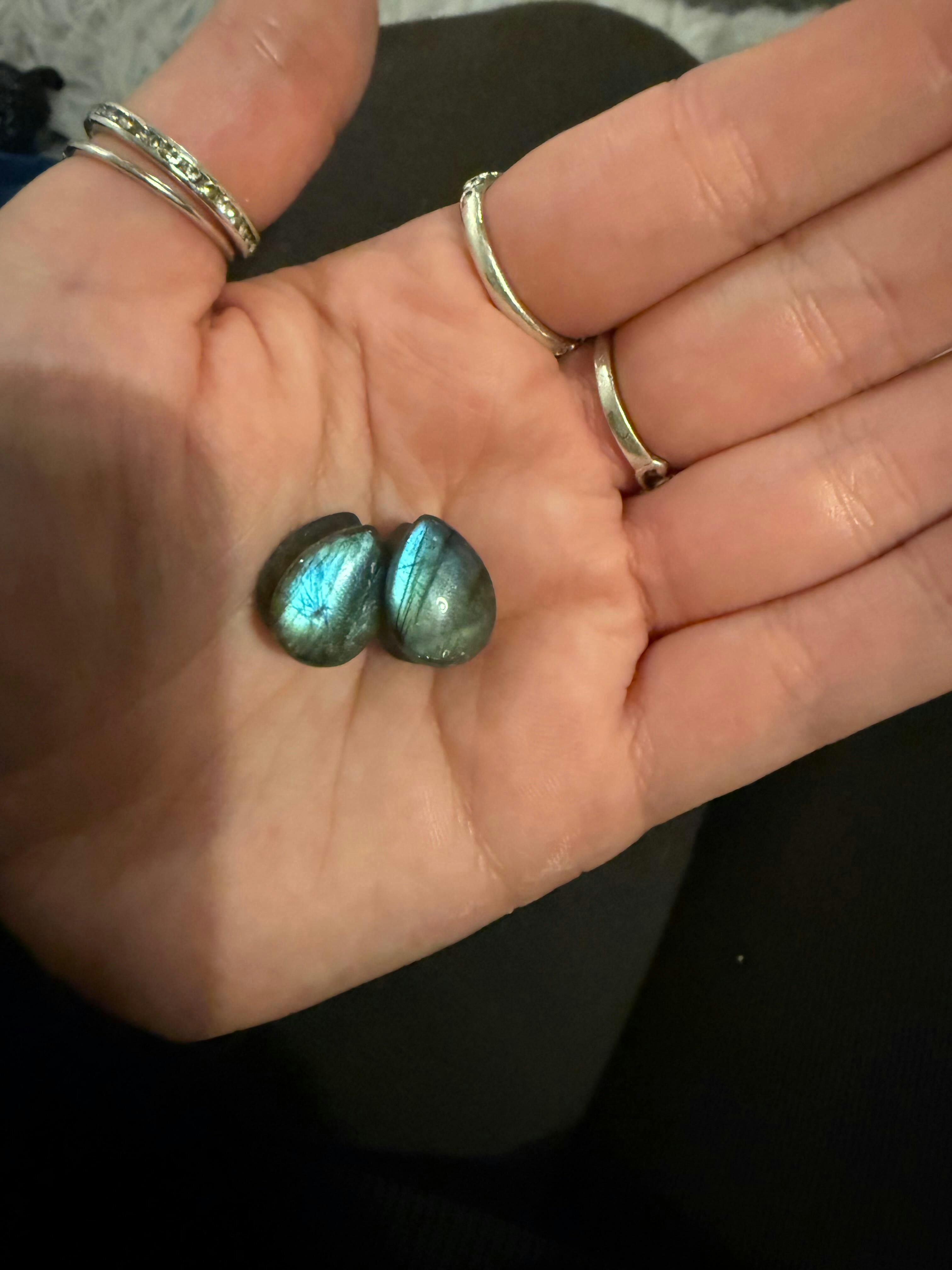 Grade AAA Labradorite Double Flare Convex Stone Teardrop Plug Model Shot