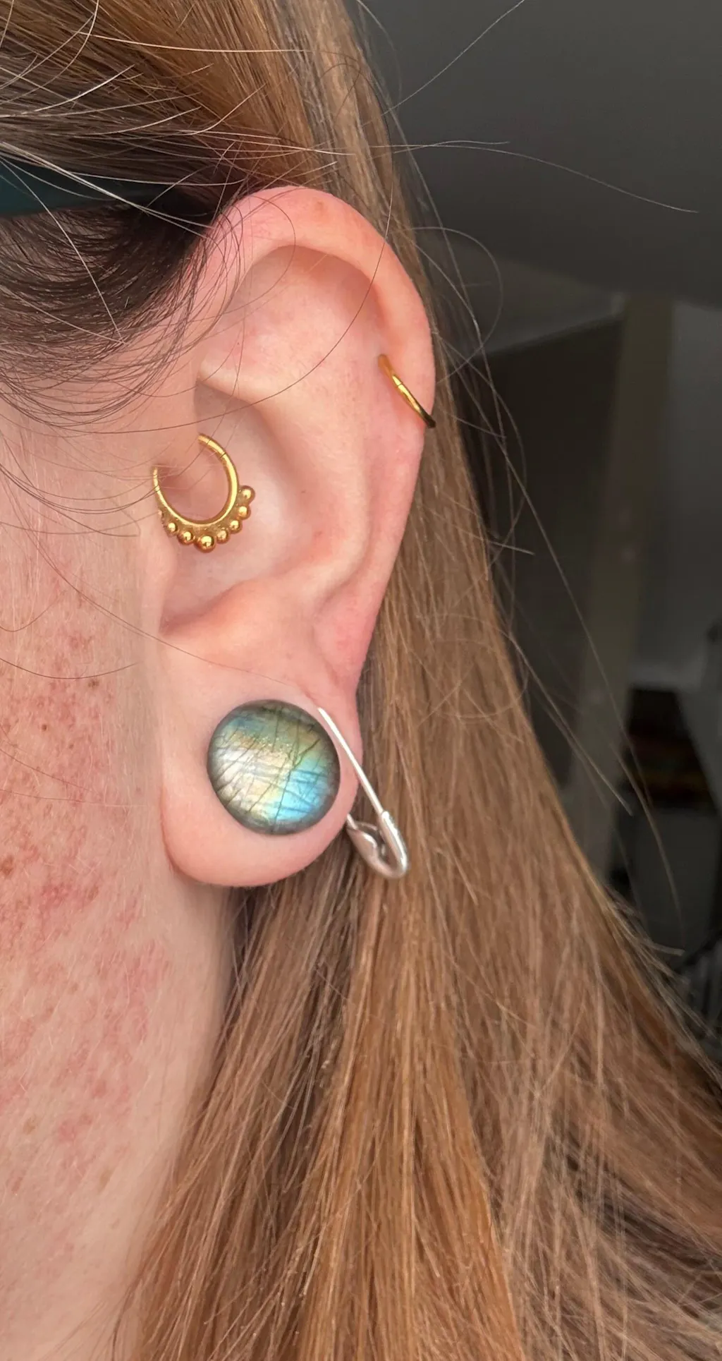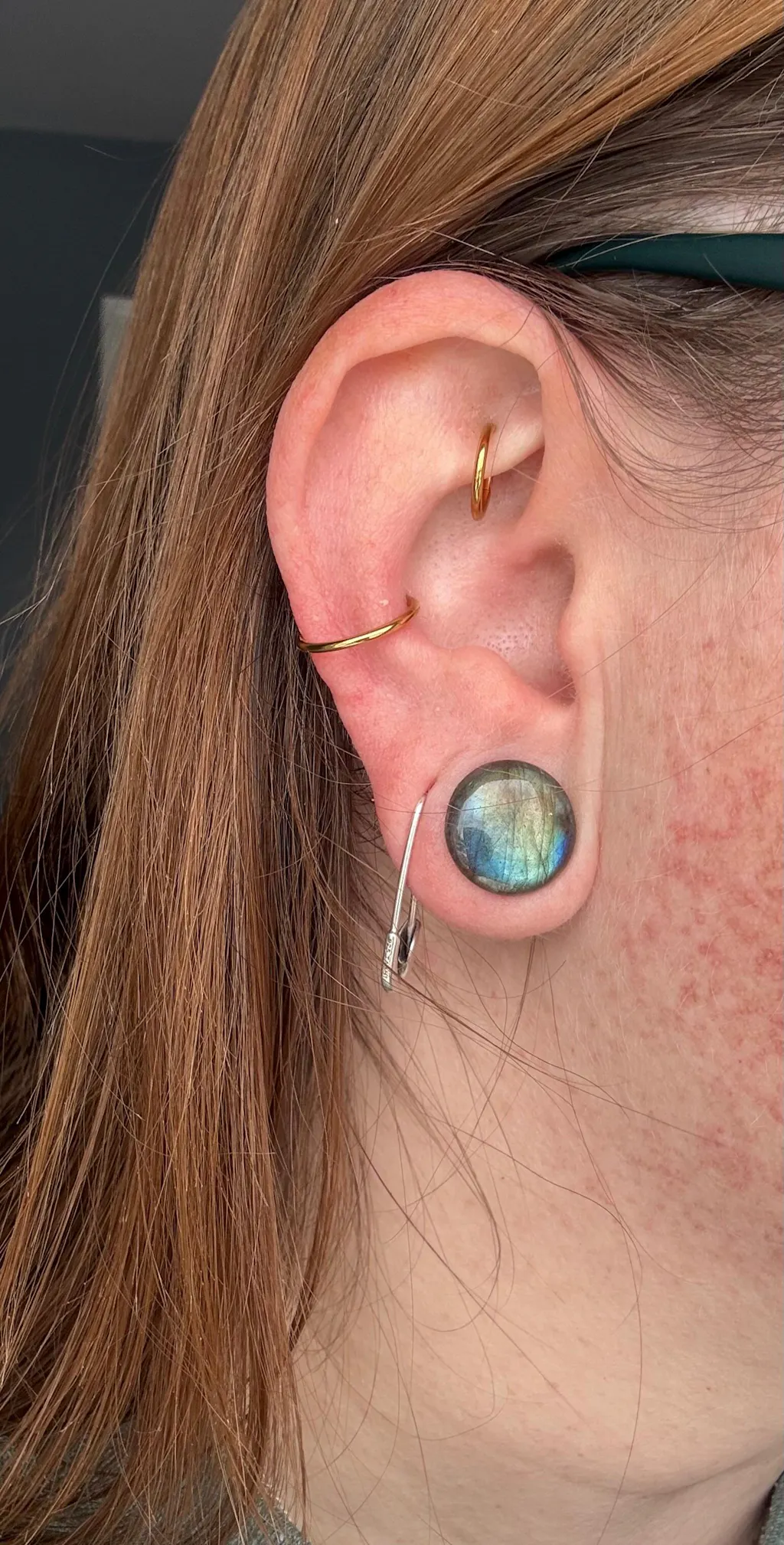 grade aaa labradorite single flare plug model shot side shot