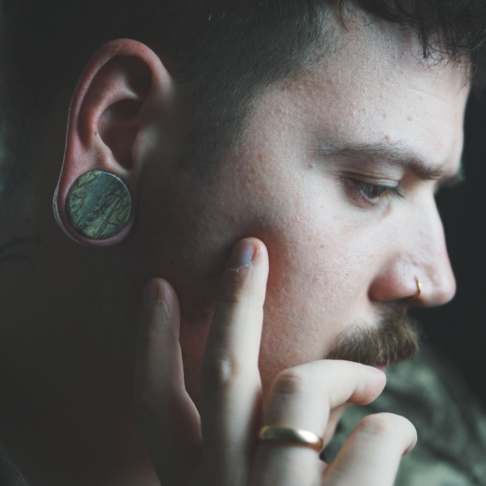 Green Line Jasper Double Flare Stone Plug Model Shot Two