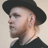 Grey Cat's Eye Double Flare Coffin Plug Model Shot
