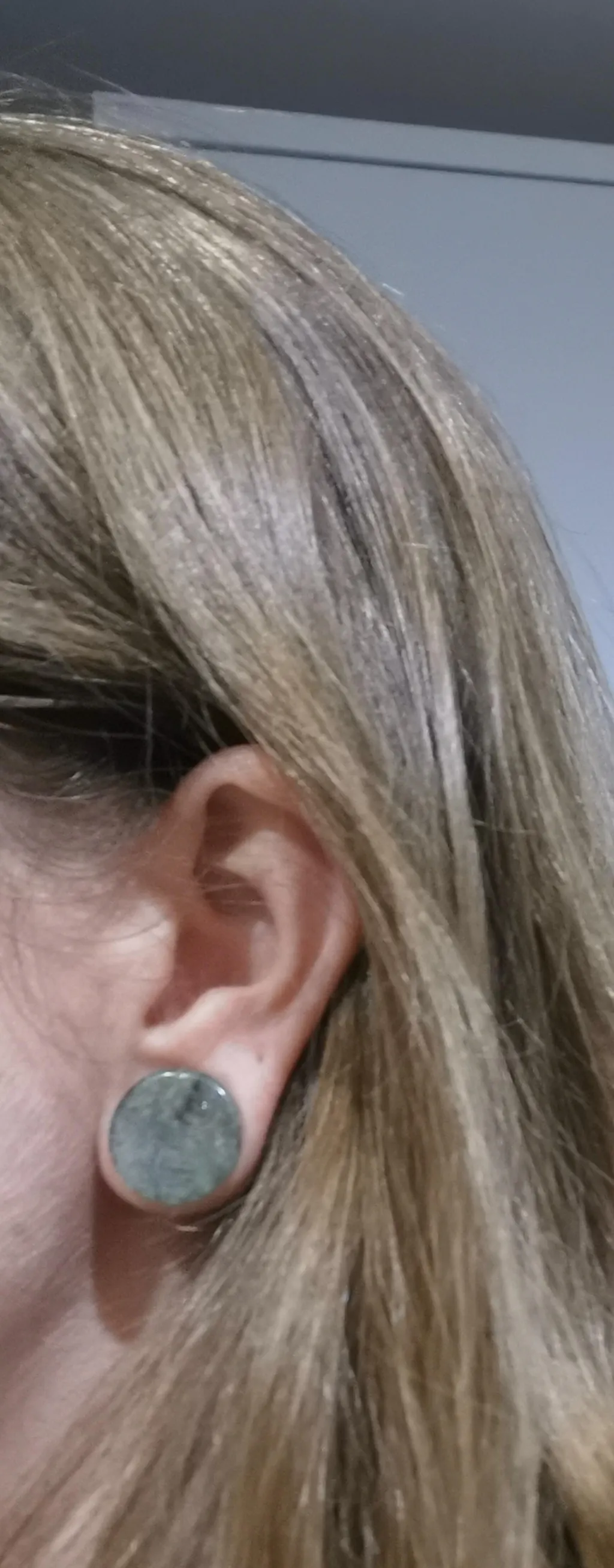 Grey Labradorite Double Flare Stone Plug Model Shot Close Up