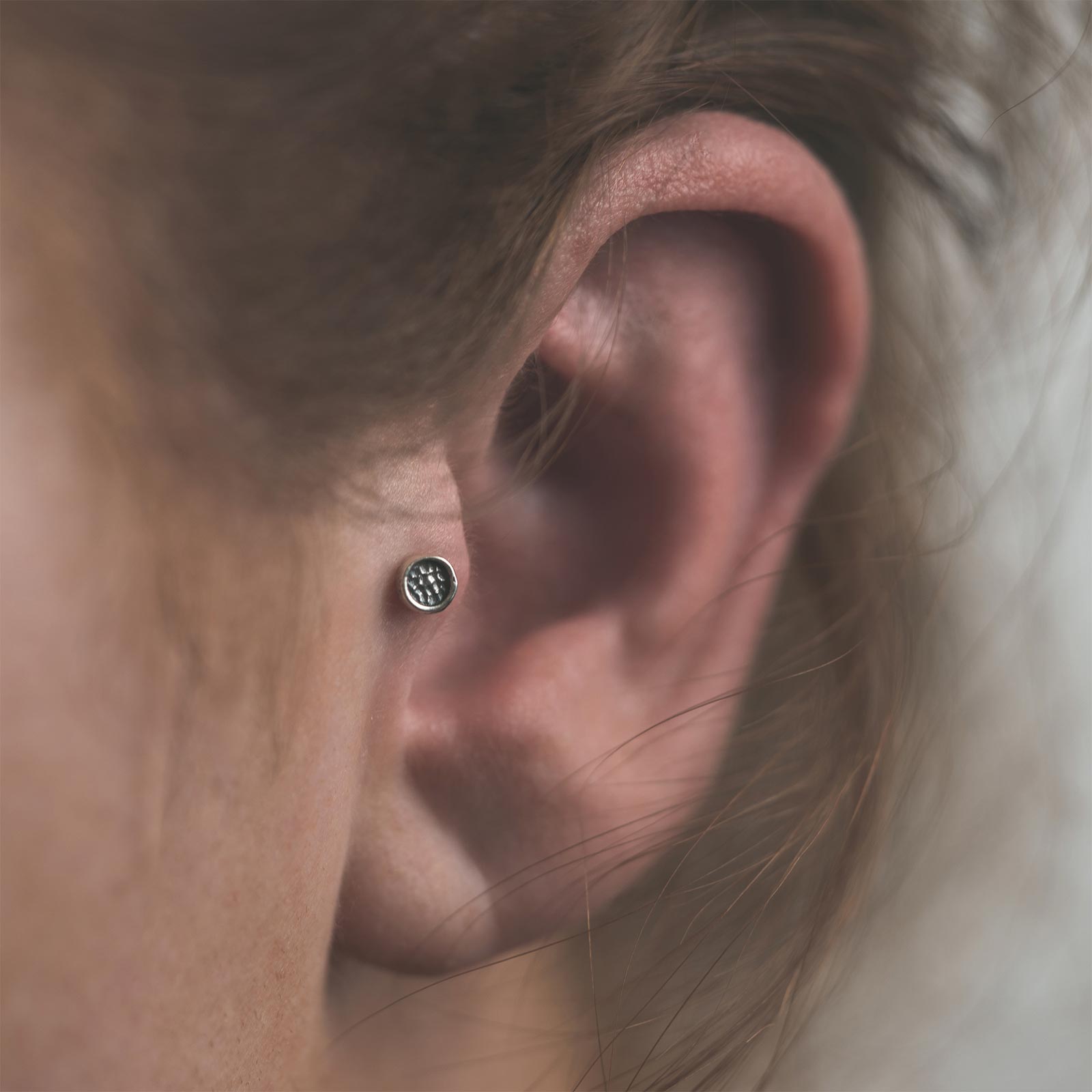 Hammered Disc 925 Silver Threadless Top Model Shot
