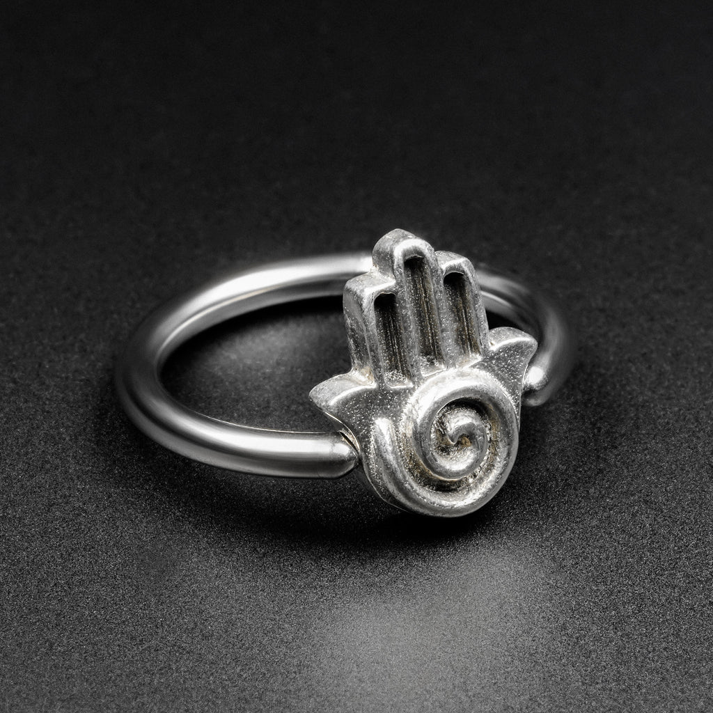 Hand Of Fatima White Brass & Surgical Steel BCR Ball Closure Ring Model Shot