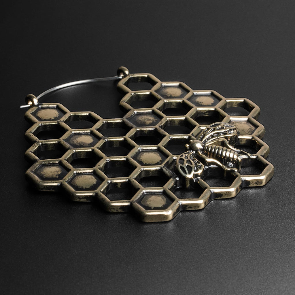 Honeycomb with Bee Brass Plated Plug Hoops Model Shot