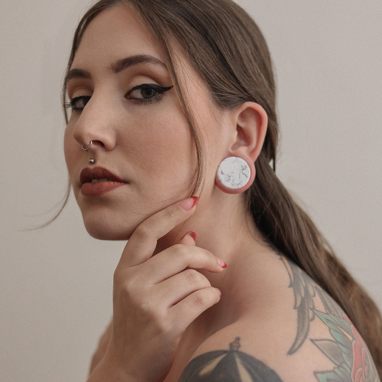 Howlite Double Flare Stone Plug Model Shot Close Up