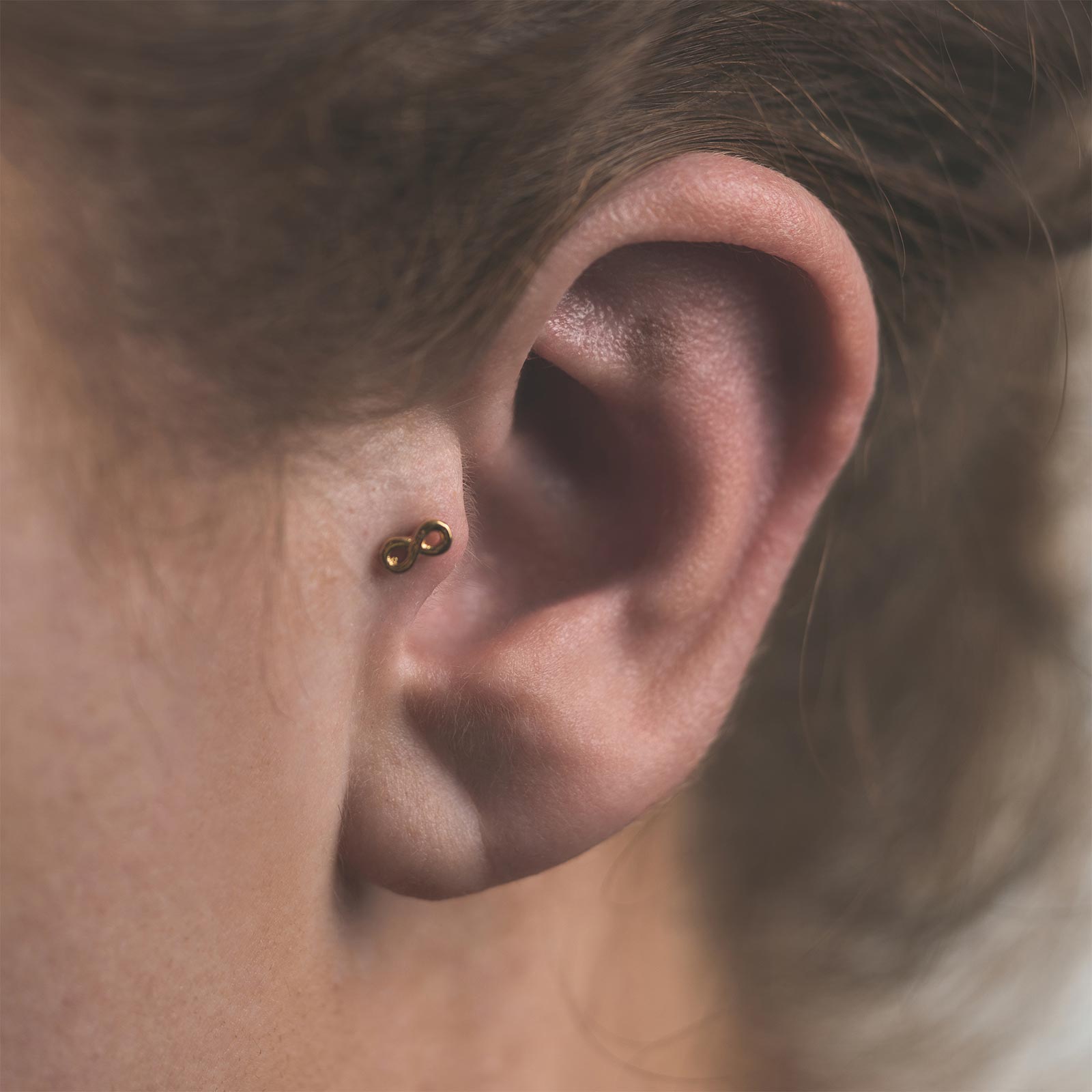 Infinity Symbol 18k Gold Plated Threadless Top Model Shot