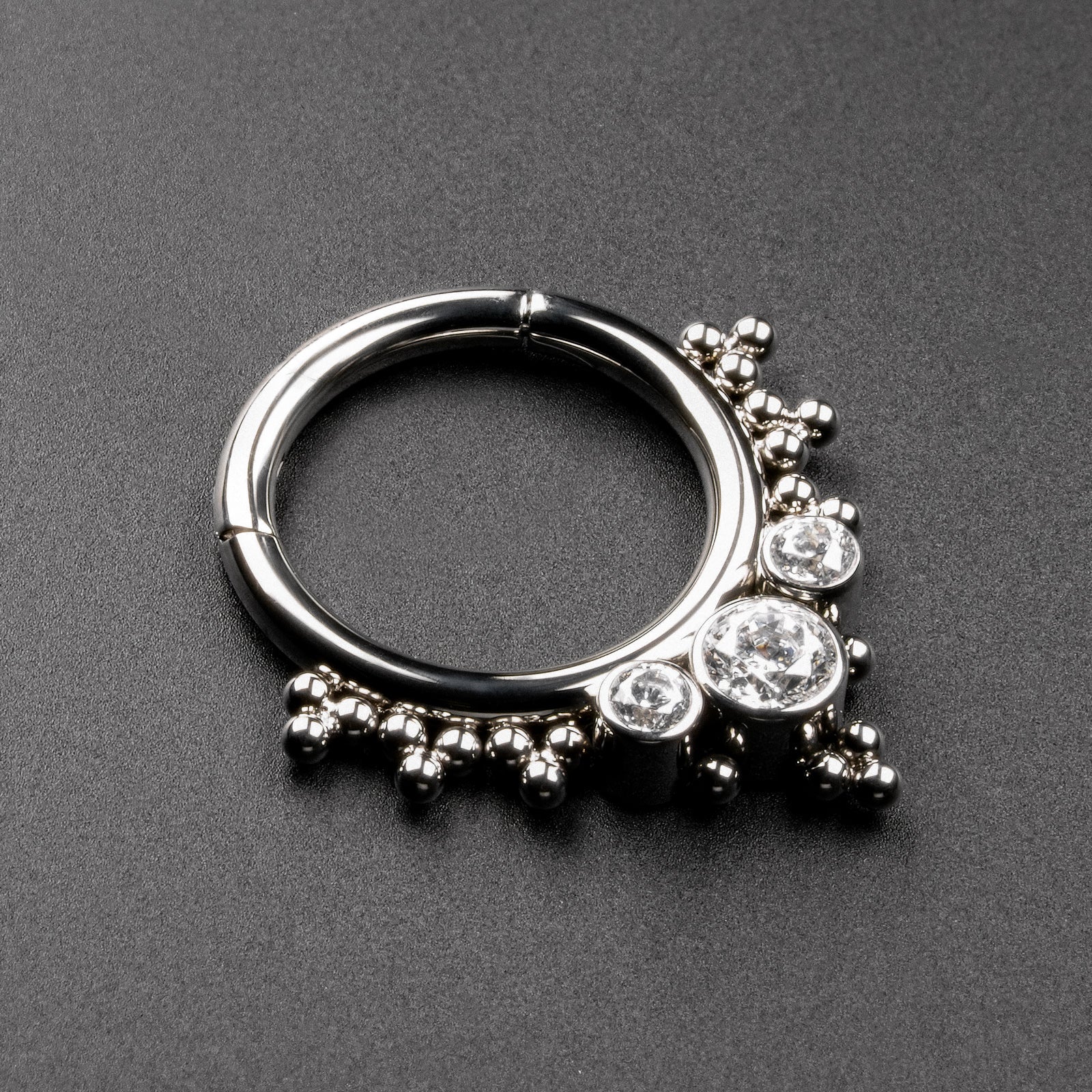 Jewelled Trinity Dot Titanium Septum Clicker Ring